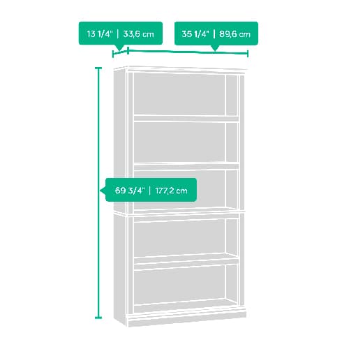 This Sauder bookcase features three adjustable shelves and quick and easy assembly with patented slide-on moldings. Select Cherry finish. Dimensions: 69.75"H x 35.25"W x 13.25"D.