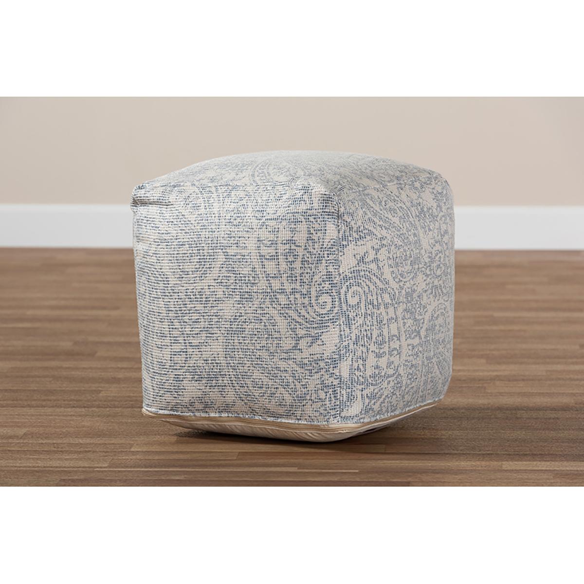 Description Add a cozy, modern touch to any space with the Baxton Studio Juvita pouf ottoman. Handwoven from cotton canvas and polyester net, the Juvita paisley ottoman features...