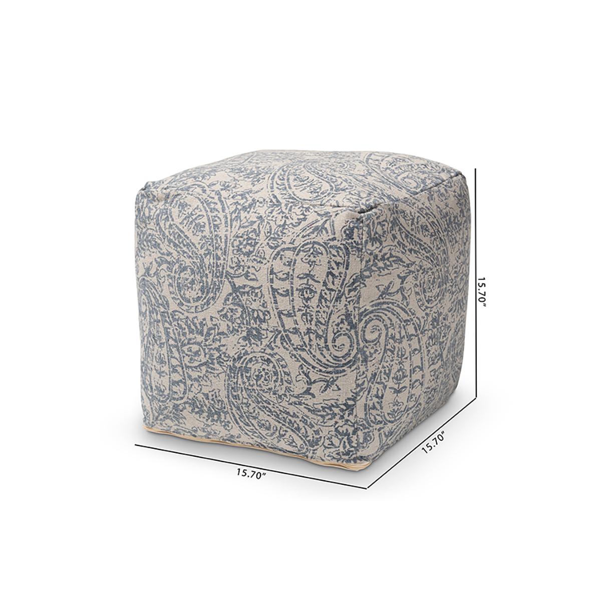Add a cozy, modern touch to any space with the Baxton Studio Juvita pouf ottoman. Handwoven from cotton canvas and polyester net, the Juvita paisley ottoman features a stylish paisley print that compliments the understated color palette. This versatile piece can be used as a footstool, extra seat, or casual coffee table. Made in India.