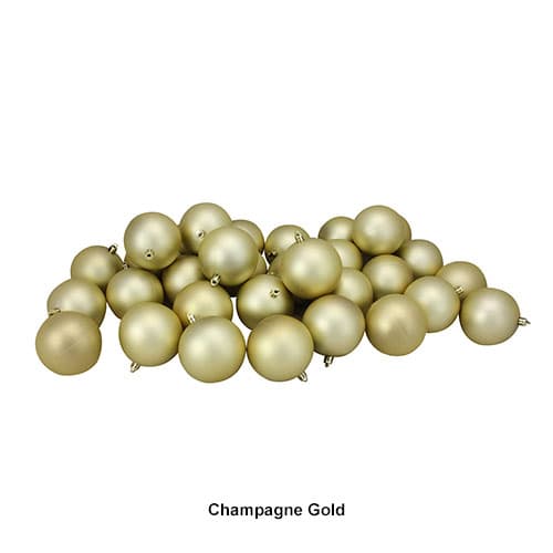 This Northlight Seasonal 32 piece matte shatterproof Christmas ball ornaments will allow you to build your collection quickly and decorate with more possibilities. These shatterproof ornaments combine the beauty and luster of real glass with the unbreakable practicality of plastic. They are 3.25 inches in diameter, come equipped with gold ornament caps and a pack of matching gold string hangers are included for optional use (ornament hooks not included).
