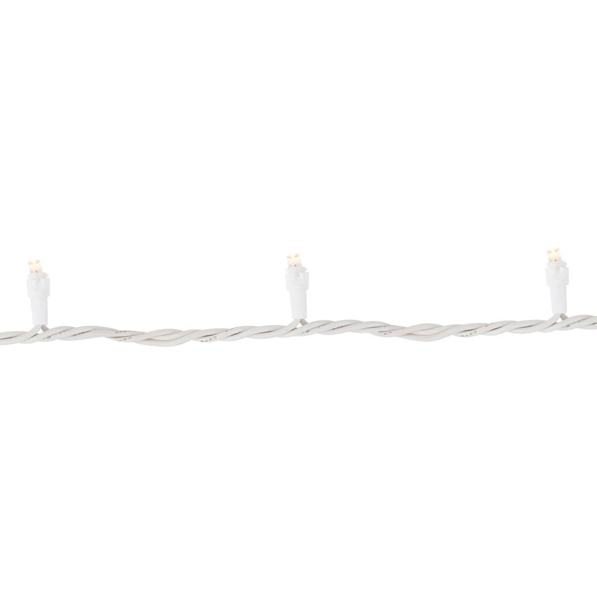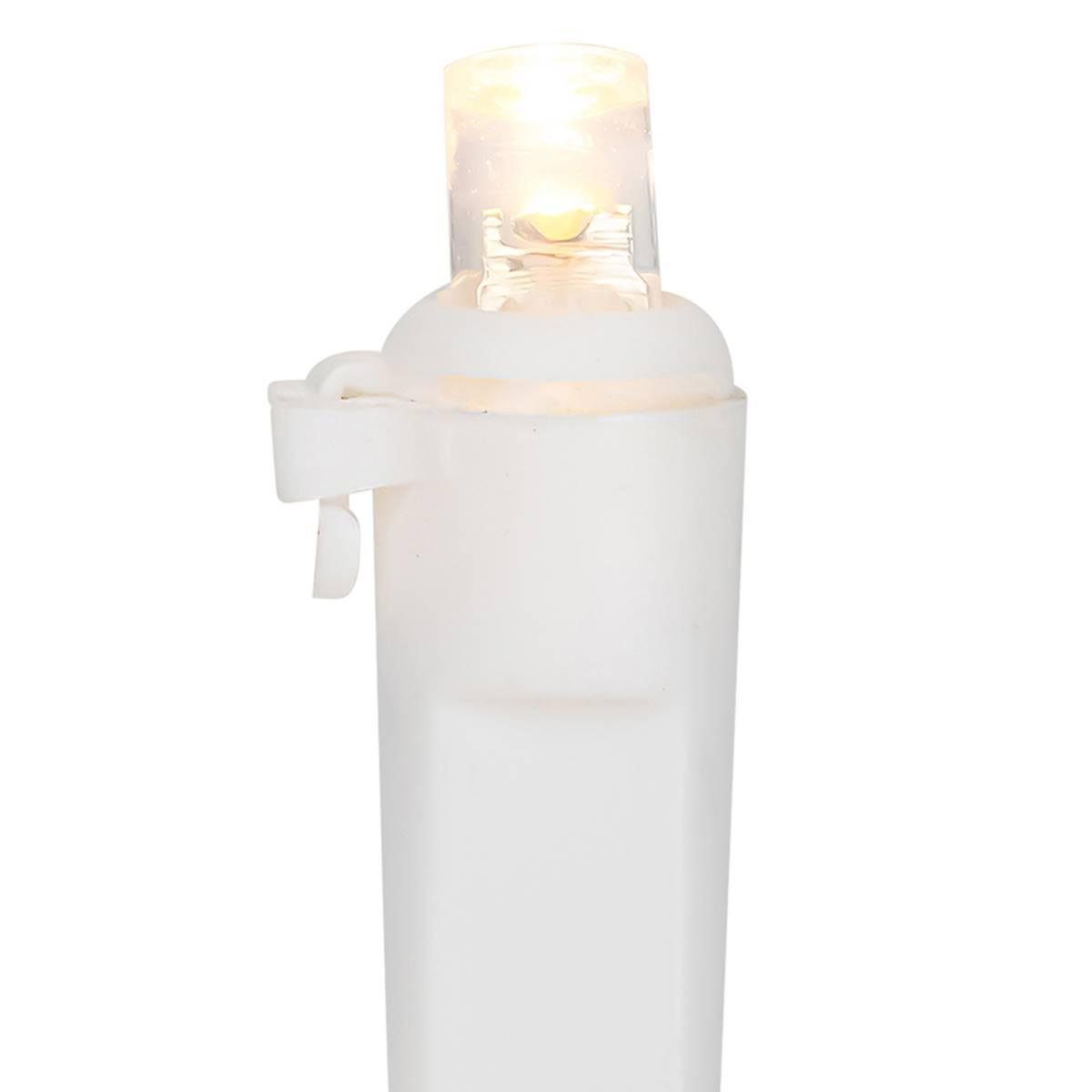 Northlight Seasonal 50 count wide angle white Christmas lights feature 50 LED lights on a 17.5 foot white wire. If one bulb burns out, the rest will stay lit. This light set comes with end-to-end connectors which allow you to connect multiple sets together, not to exceed 210 watts, durable non-glass replacement bulbs and spare fuses. Lights are equipped with Lamp Lock feature which makes them replaceable, interchangeable and keeps them from falling out. Cool to the touch. Spot clean only. UL listed for indoor and outdoor use.