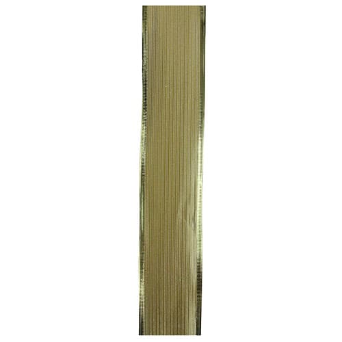 The Northlight Seasonal 12 pack gold wired ribbon features 10 yards in each roll of shimmery gold wired ribbon that is perfect for Christmas decorating or gift accenting. Sewn wire edged trim allows you to bend and shape your creations to decorate with ease. A total of 120 yards of ribbon. Materials: Polyester.
