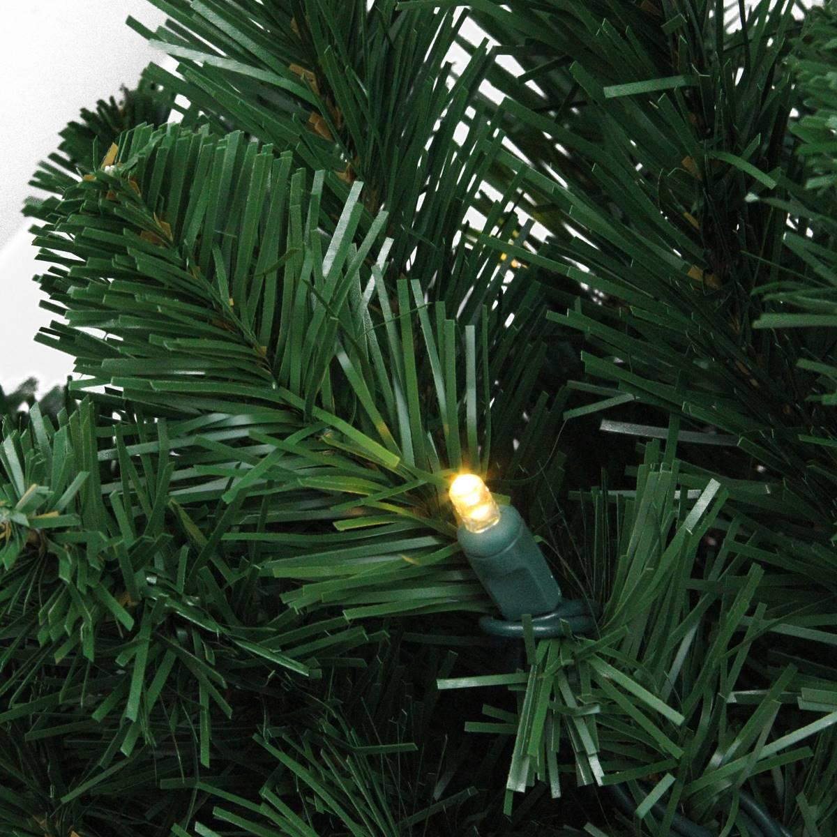 Gorgeous and lush the Northlight Seasonal Olympia pine adds the feeling of the rich forest indoors. With its medium green foliage and warm lighting, the garland creates a soft, traditional accent piece ideal for banisters and mantels. Pre-lit with 300 warm white LED lights with concave wide-angled bulbs that are UL listed for indoor or outdoor use. The durable, non-glass replaceable LED bulbs are cool to the touch and use 90 percent less energy than regular bulbs. Non-replaceable bulbs feature single mold construction. Unlike most lights, this type of construction prevents moisture from seeping in and causing corrosion. The bendable wire center allows for you to shape the garland any way you desire. It comes with green metal hooks on each end for easy hanging. Contains end-to-end connectors which allow you to connect multiple garlands together, not to exceed 210 watts.