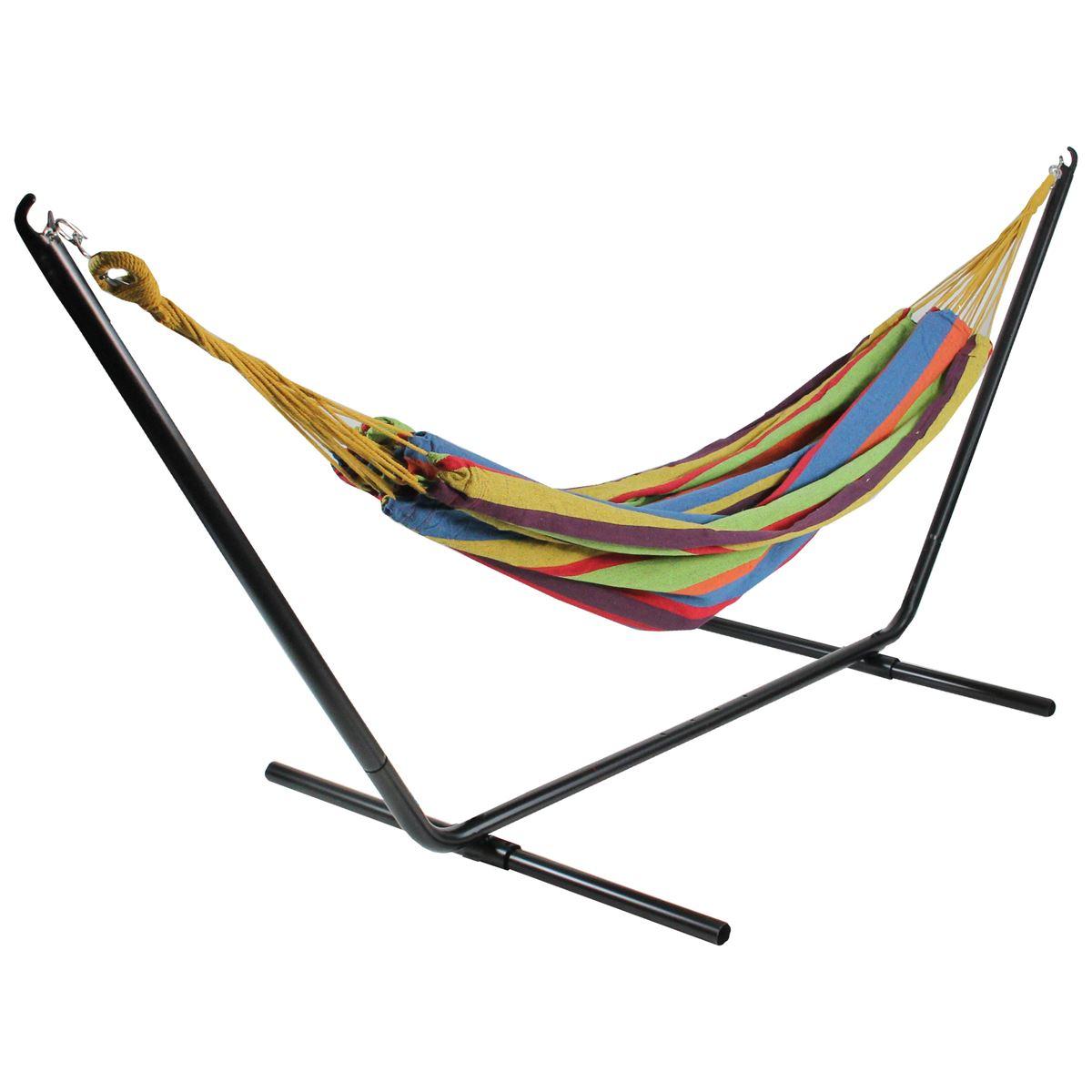 Description This Northlight Seasonal 72 inch 2 person striped double Brazilian hammock lets you relax in style this summer season. Its woven design features a multi colored...