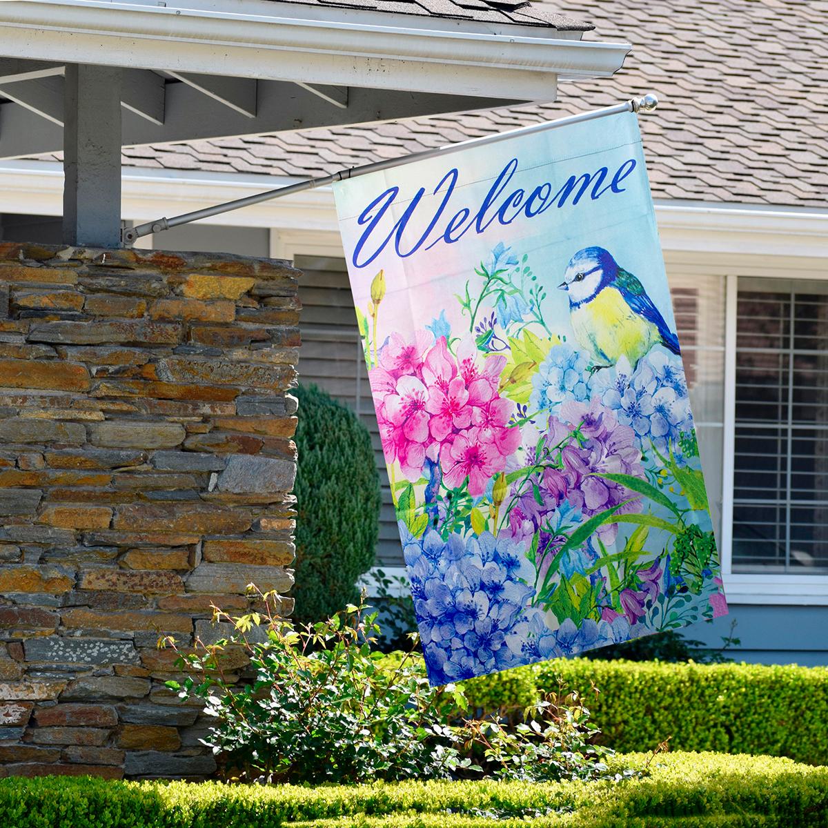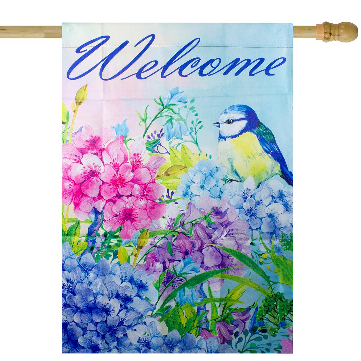 Description Pay homage to the birds and flowers of spring with this lovely Northlight Seasonal welcome bird outdoor house flag. With a beautiful portrait of hydrangea plants, its...