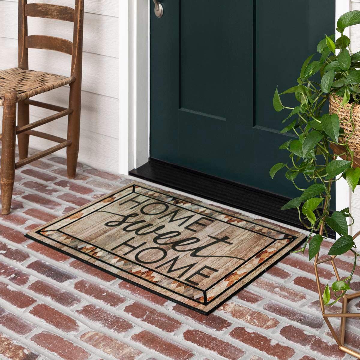 Description Natural neutral brown woodgrain inspired textures complement the black script print of this Mohawk Home rustic "Home Sweet Home" doormat. Environmentally friendly,...