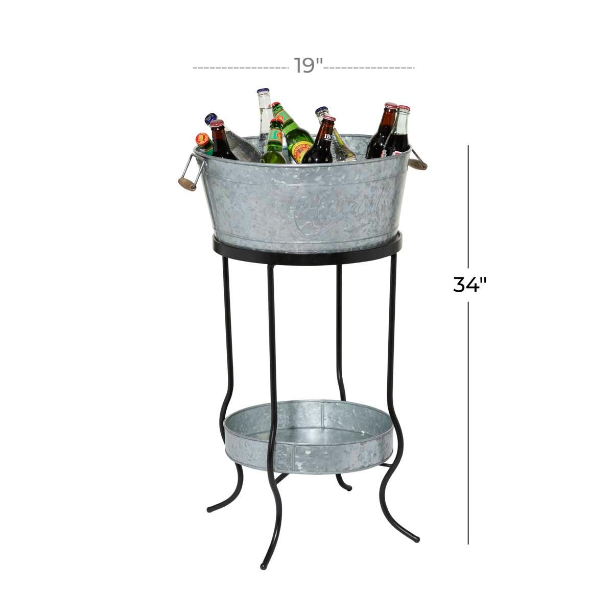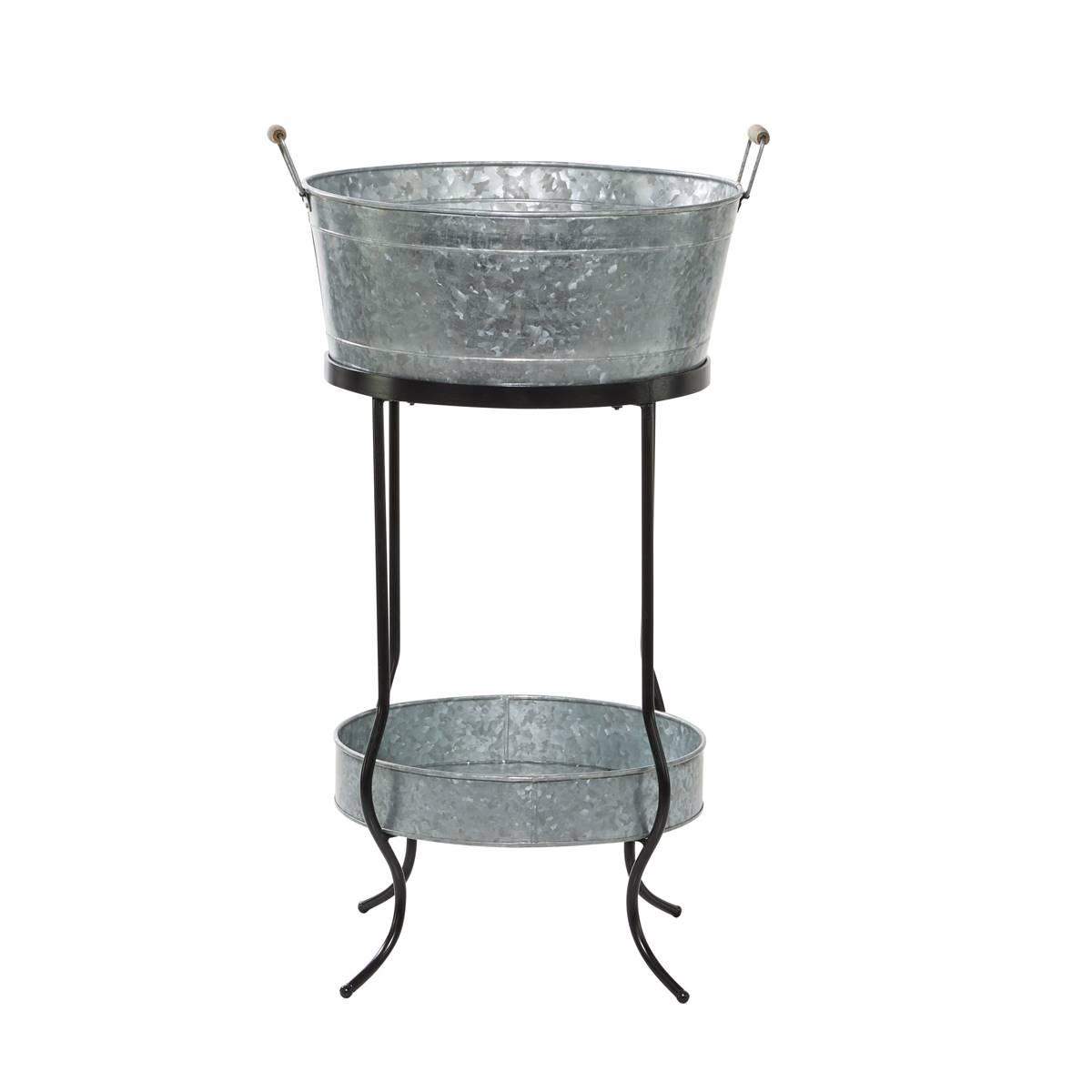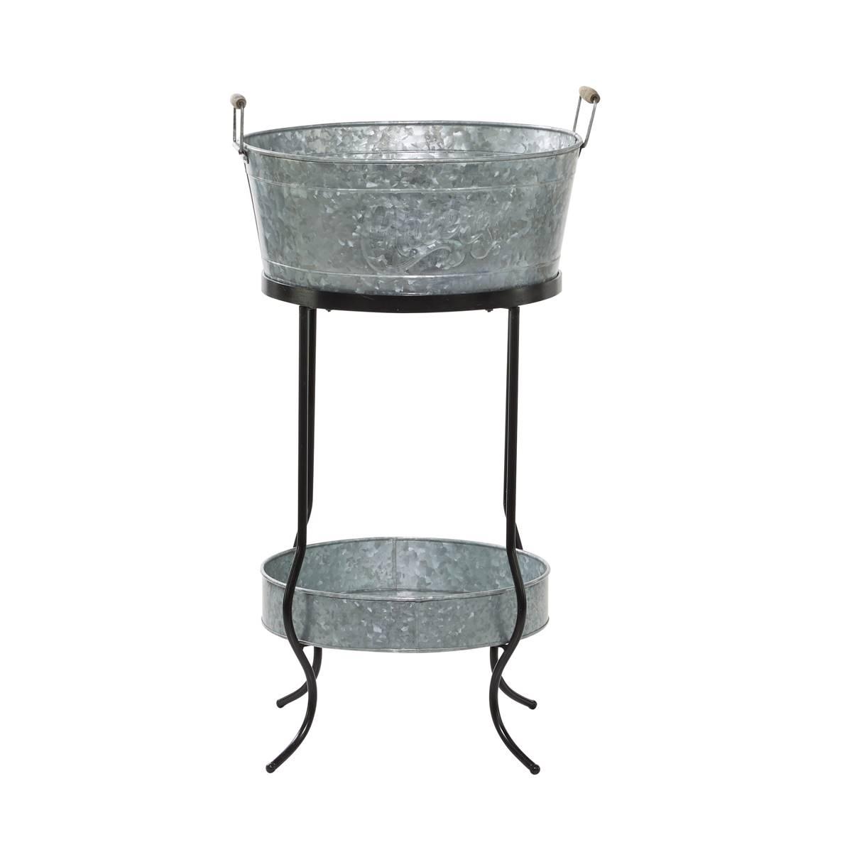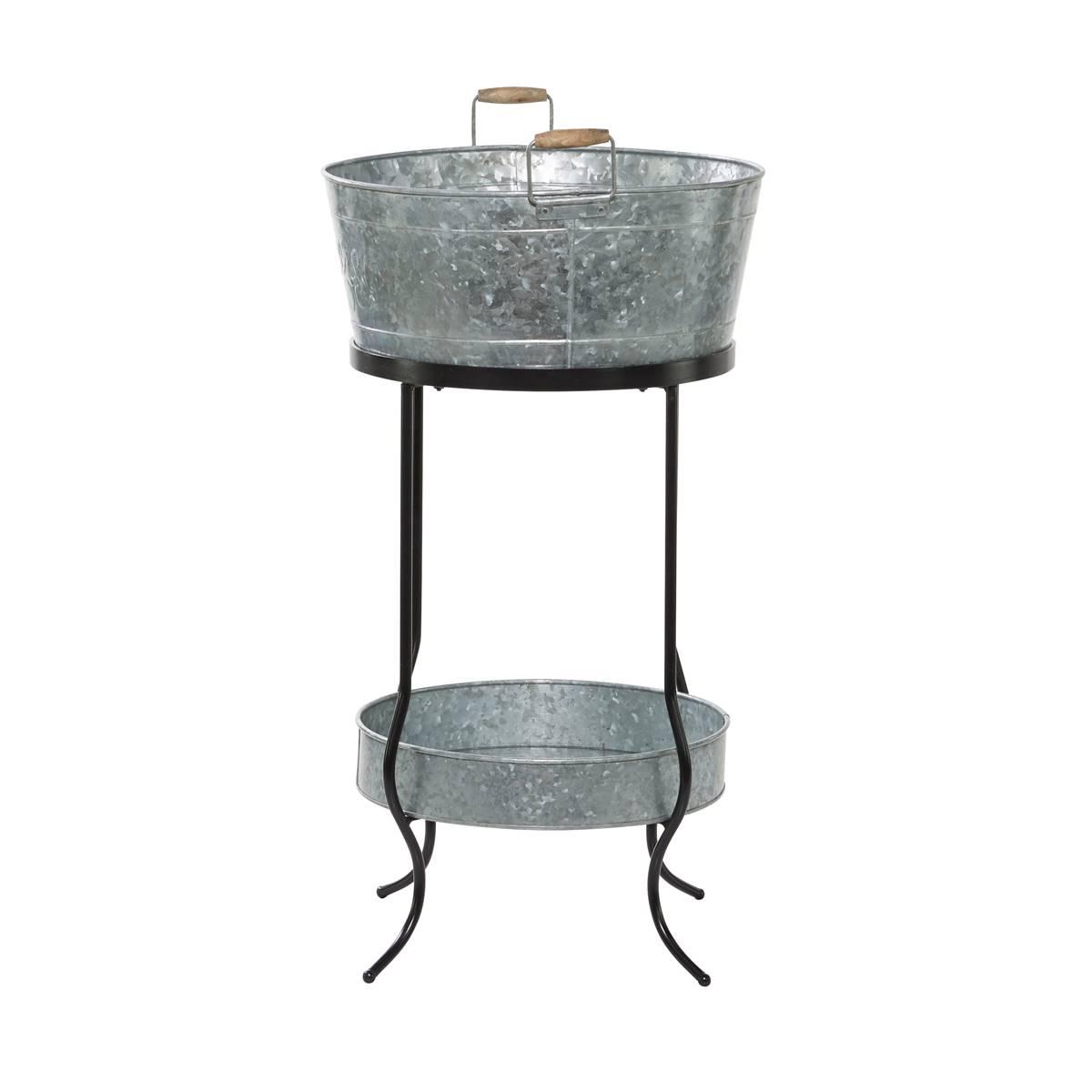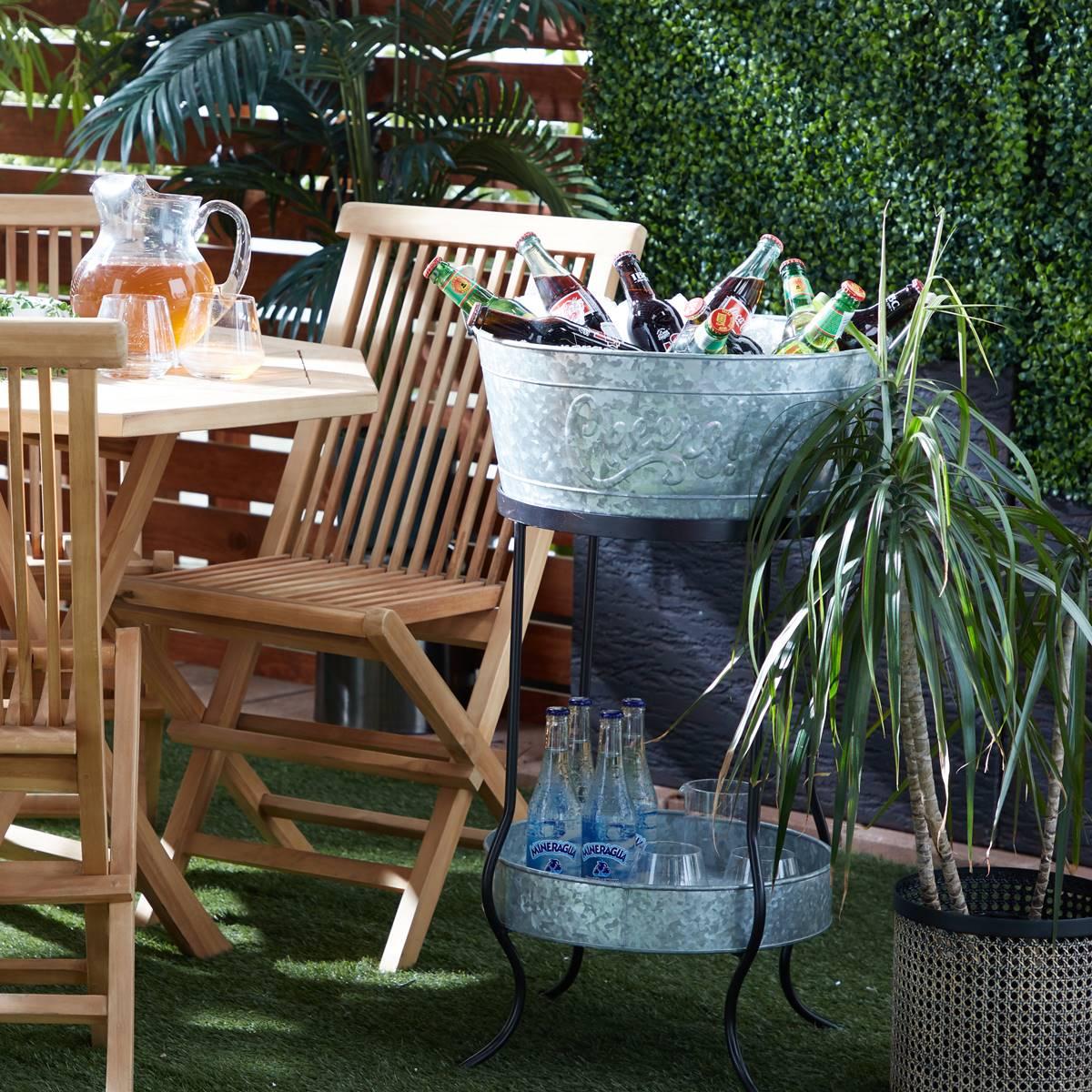 This 9th & Pike® outdoor drink bucket made in India showcases a galvanized look that goes well with country and farmhouse interior and garden concepts. It features four legs and two tiers, the lower one functioning as a tray. Use it to serve ice during wine parties, or you can put the actual bottles in it to keep them cool. And on regular days, it can hold alcohol bottles.