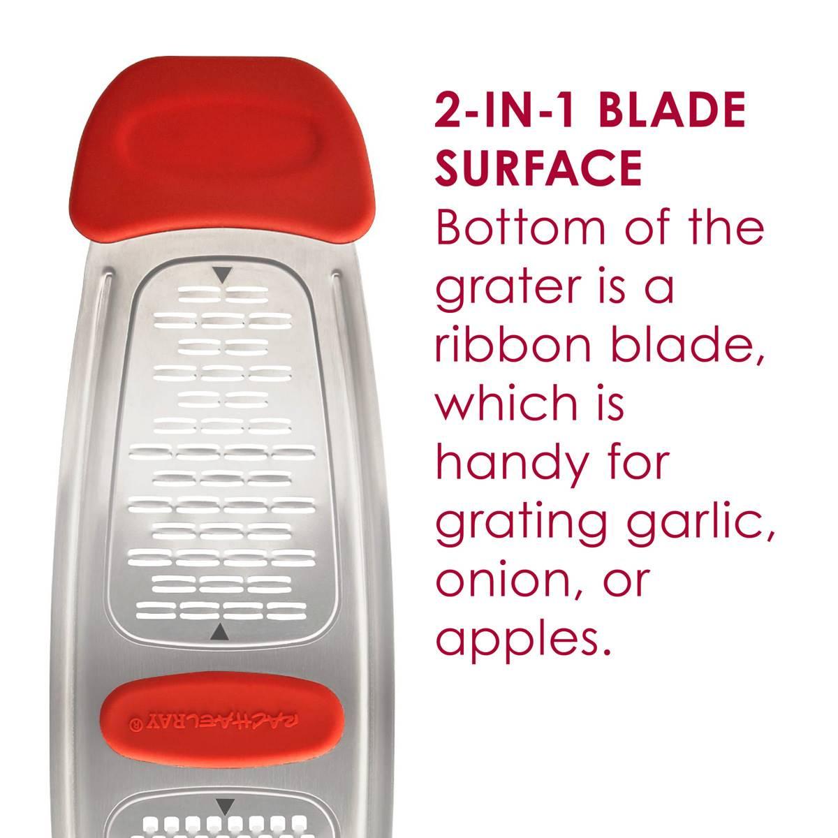 Description Grate and zest with ease with this convenient and stylish stainless steel multi-grater from Rachael Ray. An innovative design allows you to conveniently lay the...