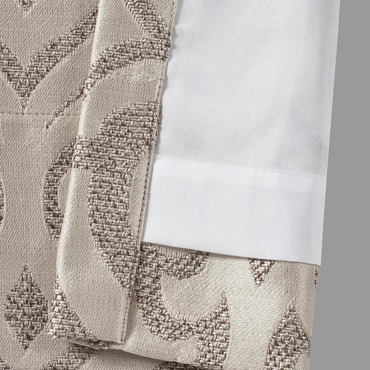 The J. Queen New York Milan window panel pair is exquisite with its fine details and sophisticated use of ivory and taupe tones. This beautiful panel features a woven traditional damask on a textured ground design house quality fabric. These lined panels include tiebacks and provide light-filtering shade to keep your room comfortable throughout the day. The 3-inch header and 3-inch rod pocket make the panels easy to hang.