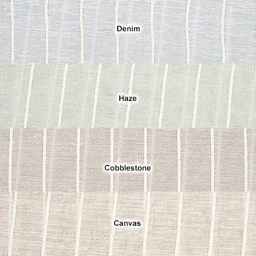 The Serene grommet curtain panel features a horizontal stripe pattern against a lovely faux linen background. Serene is available in four gorgeous colorways: Blue, Green, Grey, or Natural. Recommended hardware: a decorative rod of your choice. 100% Polyester. Machine wash cold, gentle cycle. Do not bleach. Tumble dry, low. Touch up with cool iron as needed. 1 Panel is included per package. Sizes: 50x63, 50x84 and 50x95.