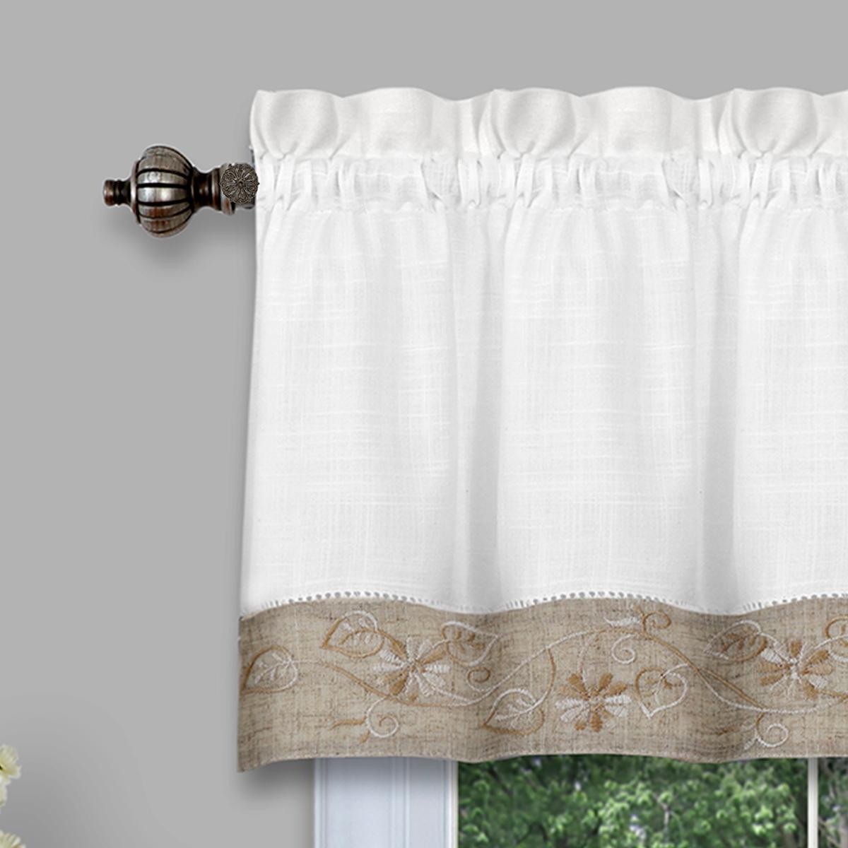 Description The Achim Oakwood tier curtain features a tailored natural linen look with monochromatic floral embroidery. With rod pockets and easy care, this tier is perfect for...