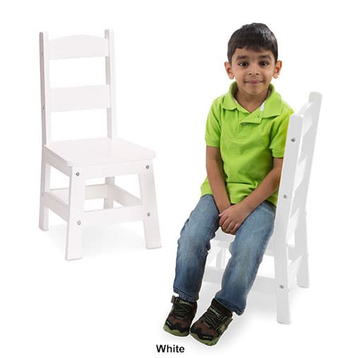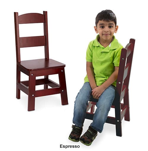 Description The Melissa & Doug® Wooden Chair pair have an 11-inch seat height that´s comfy for kids, plus durable pieces and a reinforced tip-resistant design that parents...
