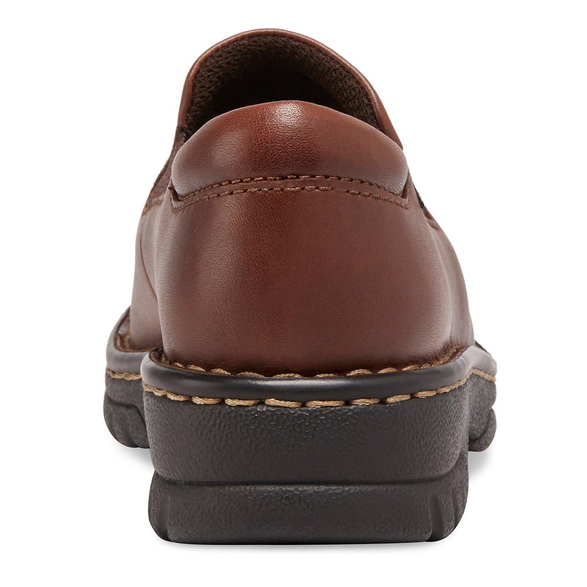 Your feet will thank you for the all-day comfort and casual-to-dress versatility of this favorite slip-on. These Womens Eastland Newport flats are a perfect wear-anywhere, a do-anything style that looks great with jeans and khakis. Featuring a padded collar plus dual elastic goring for a cozy, custom fit with easy-to-care-for full-grain leather upper and breathable fabric sock lining. A removable, cushioned insole with super soft comfort zones does away with over-stressed feet. Hand-sewn, Opanka stitch-to-sole construction provides flexibility and long-lasting wear with shock-absorbing Polyurethane outsole that offers lightweight durability and traction.