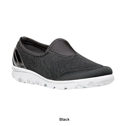 The Womens Propèt® TravelActiv slip-on fashion sneakers have engineered mesh uppers with mesh linings. The shoe has a stretch gore at the instep for easy slip-on convenience with cushioned EVA insoles. The lightweight TravelTek™ EVA outsoles specially formulated for traction and durability.Also available in Narrow and Wide Widths.