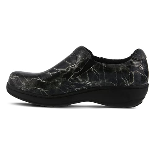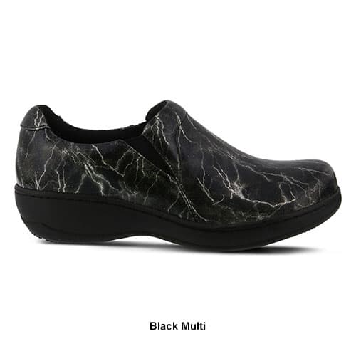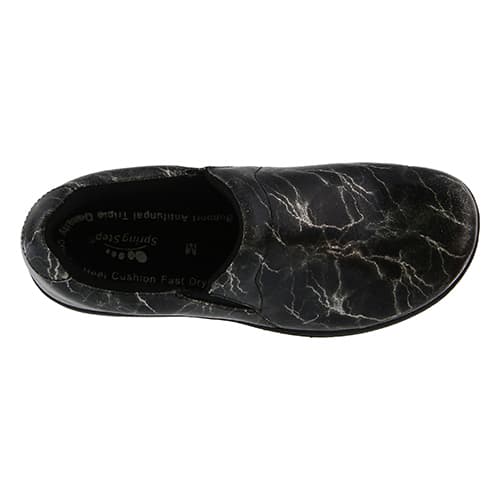 Description These Womens Spring Step professional Woolin-Light slip on clogs showcase vibrant lightning printed premium leather uppers with a padded heel collar and exposed side...