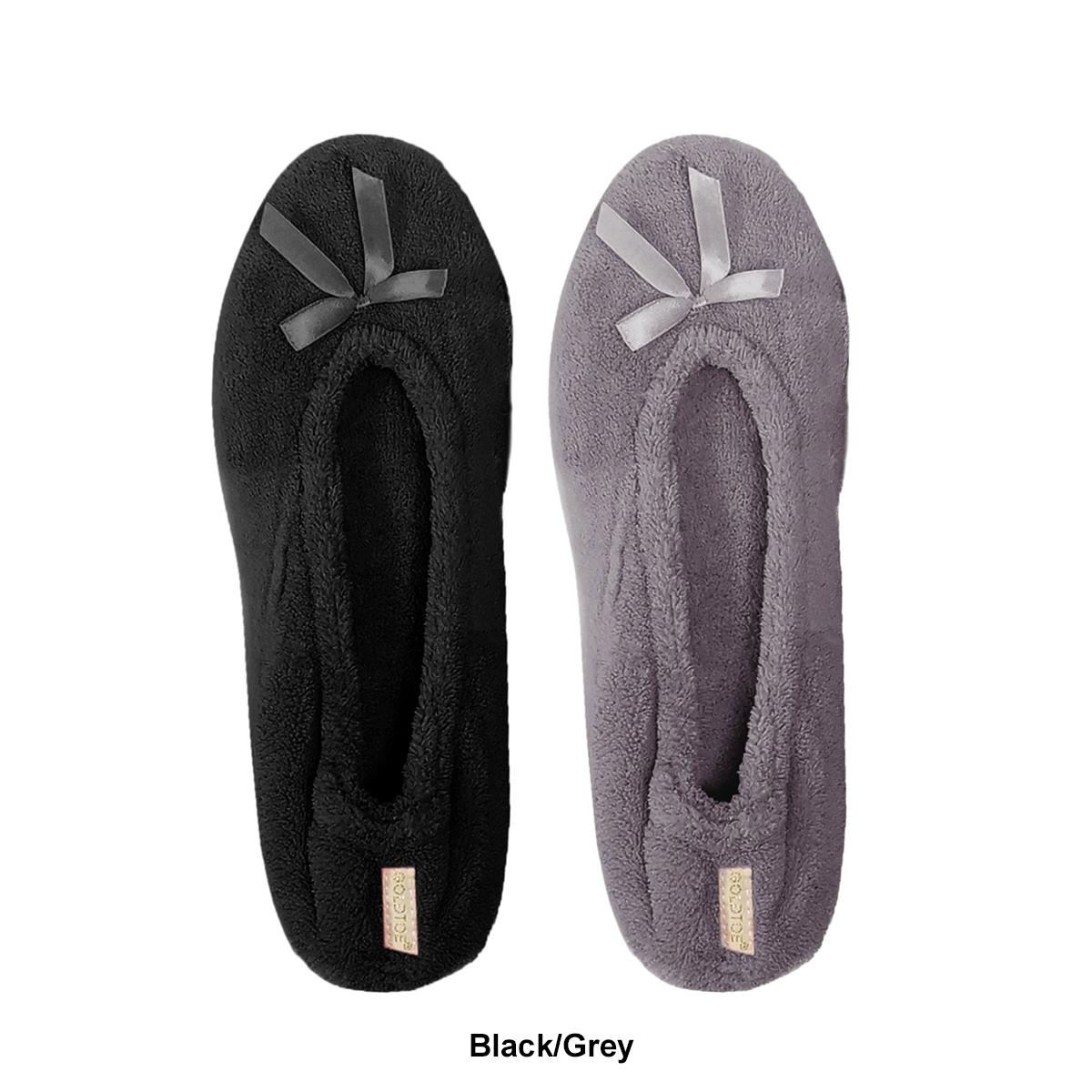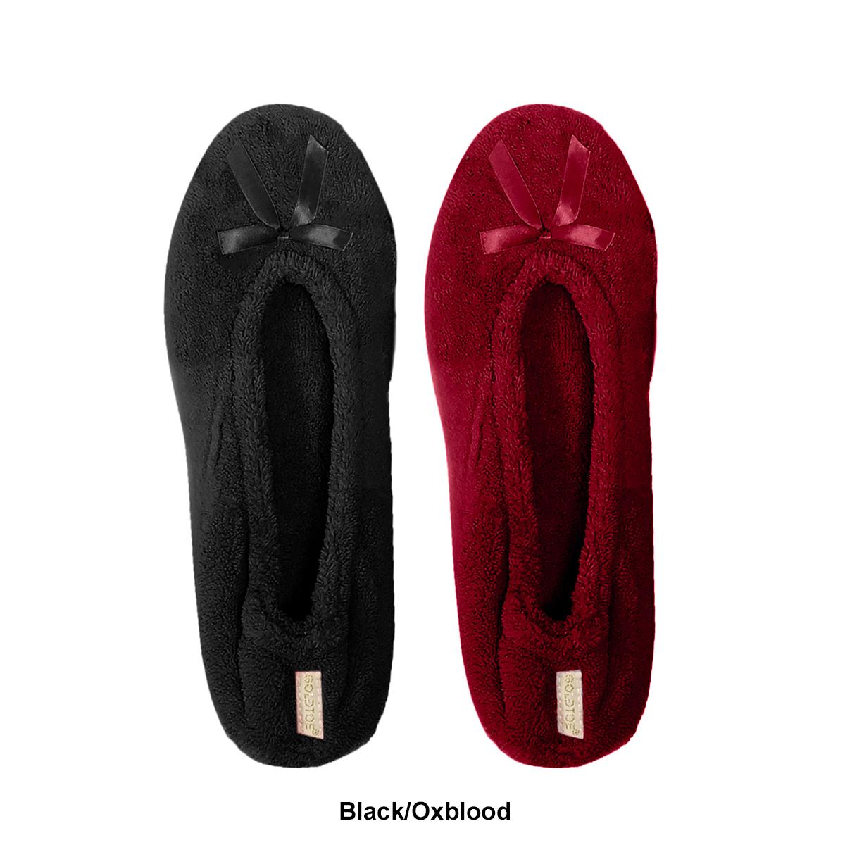 Description Complete your sleep attire with the relaxing Womens Gold Toe® 2-pack of soft terry ballerina slippers. Includes man-made gripper outsole for easy in-house traction....