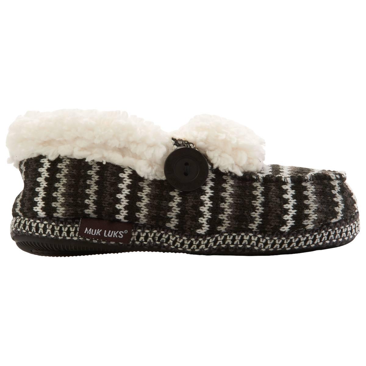 Slip into these plush Womens MUK LUKS® Sequoia moccasin slippers for ultimate comfort. Faux fur trim and lining, cable knit upper, and durable indoor/outdoor sole make these moccasins perfect for chilly temps.