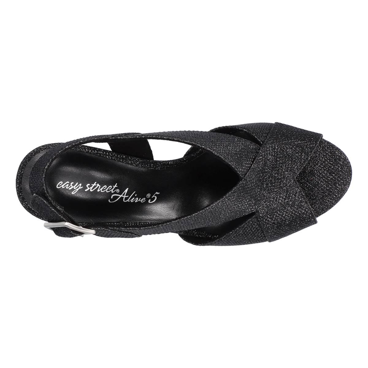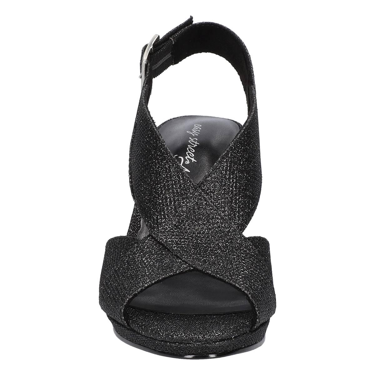 Sophisticated and stylish, these Womens Easy Street Christy glitter peep toe heels are the perfect way to elevate your attire. The contemporary dress heel and platform will transform your look day, night, or evening. The adjustable slingback offers a more custom fit.