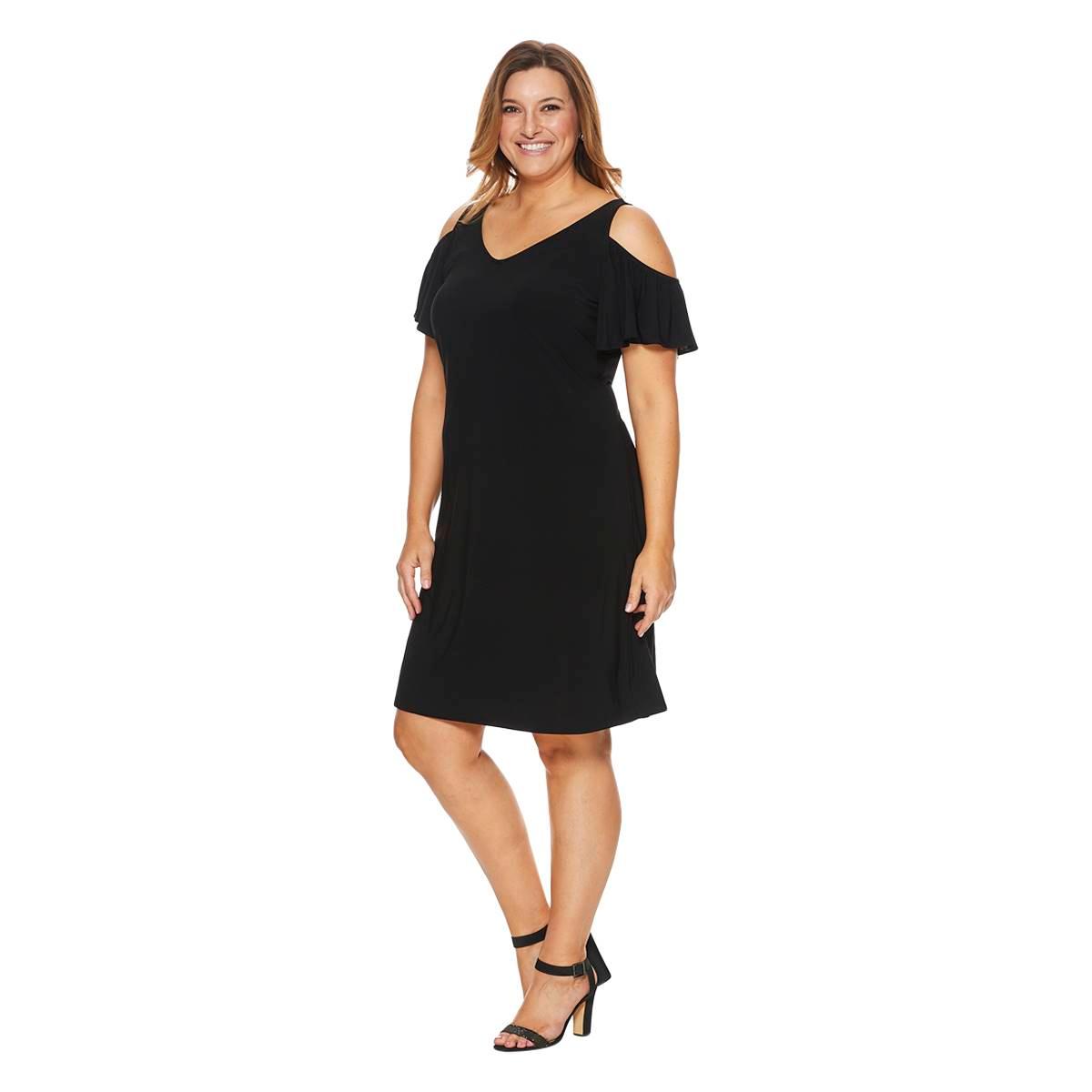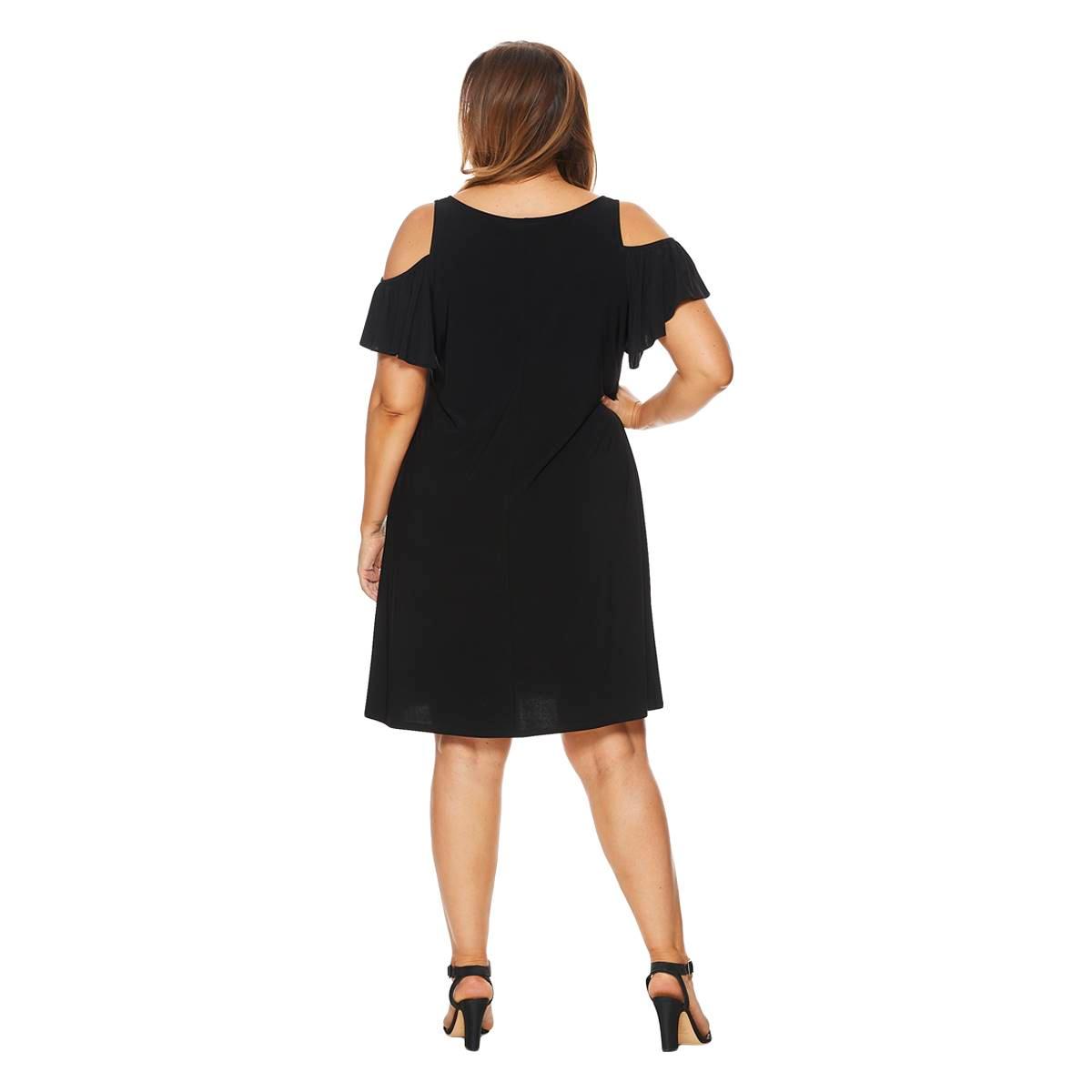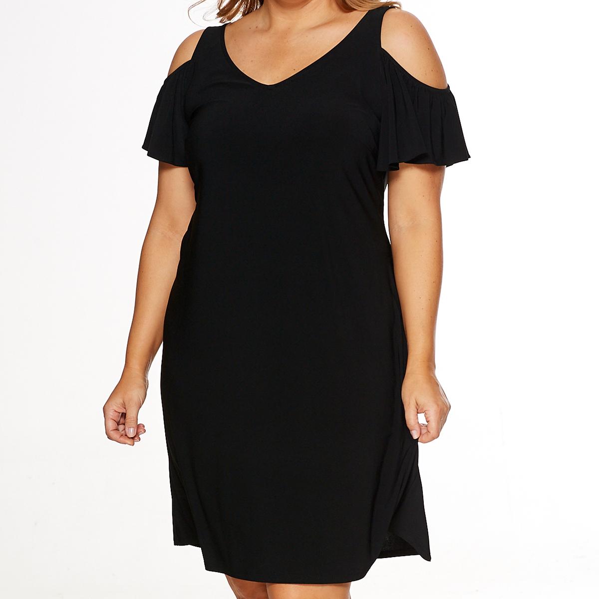 Description Enhance your casual style with this Plus Size MSK cold shoulder solid swing shift dress. Sleeve Length: Short SleeveNeck: V-NeckLength: 40"Flutter sleeve Cold...