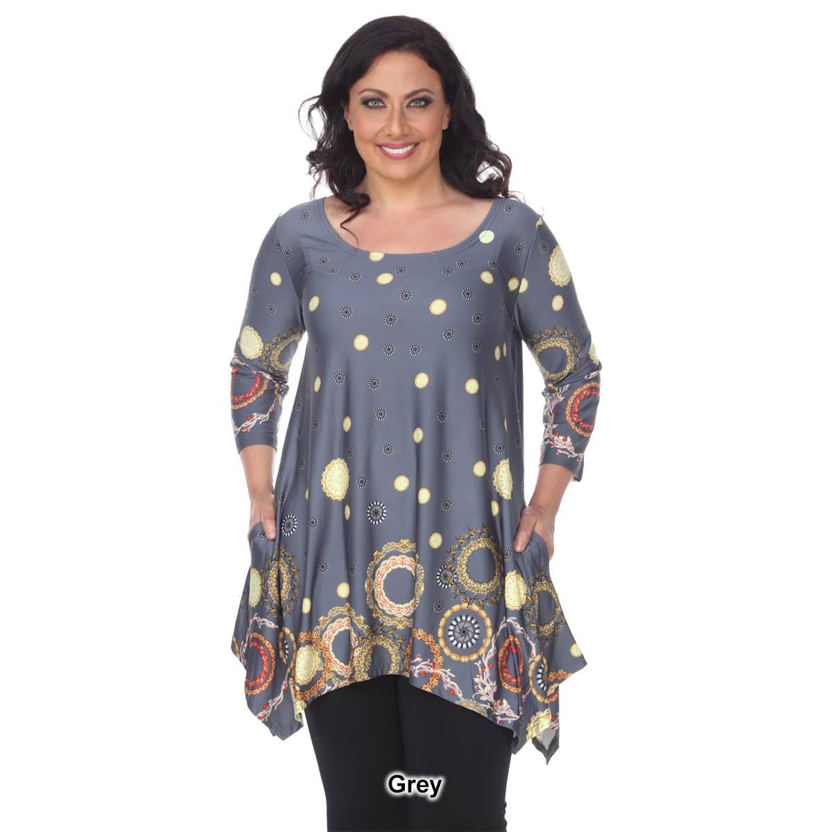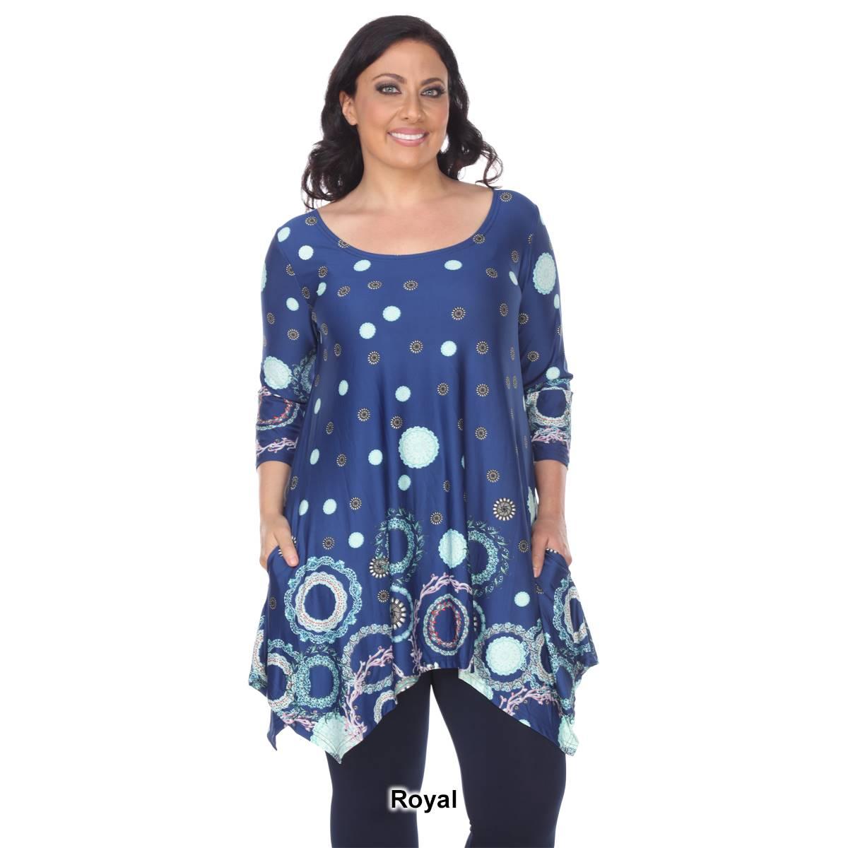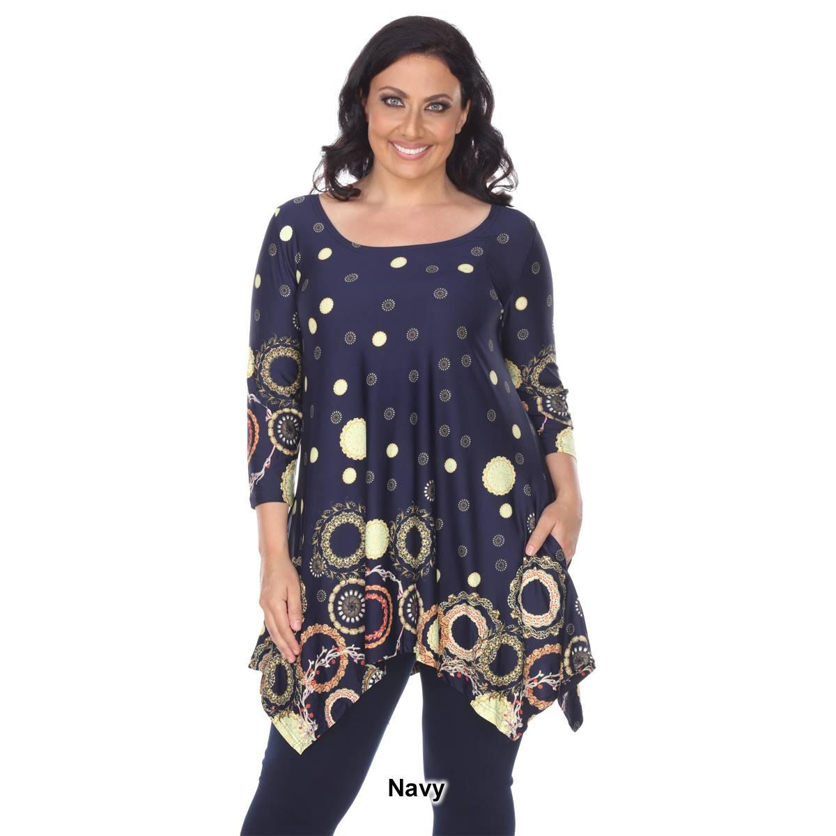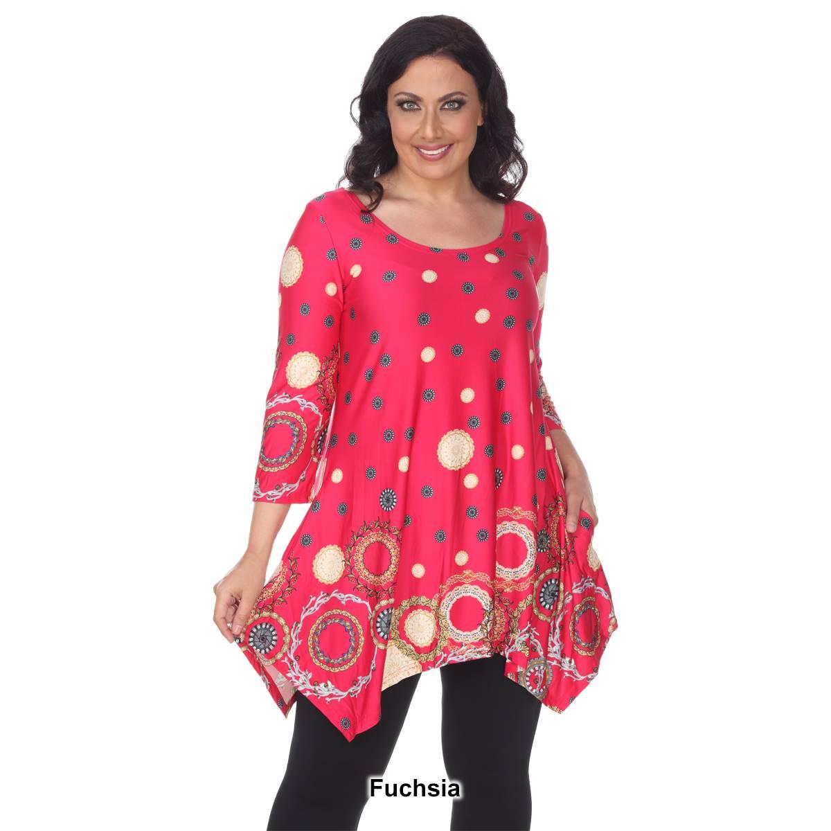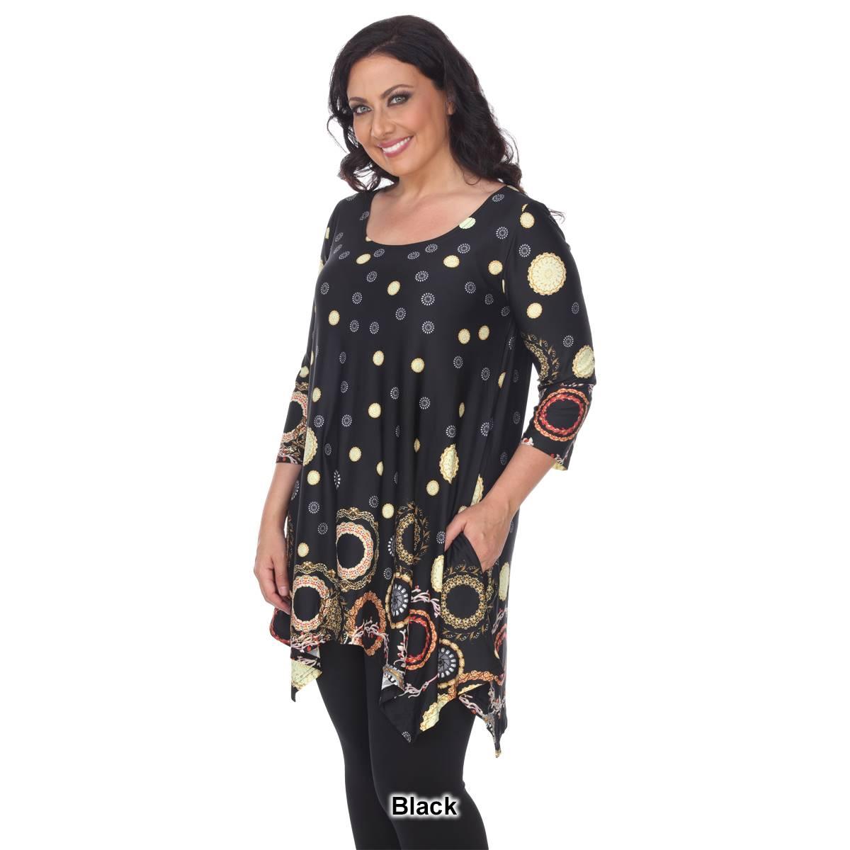 Description This flattering Erie White Mark tunic drapes stunningly on your body. With 3/4 sleeves, boat neck, and a bold and flirty combination print of unique style, you are...
