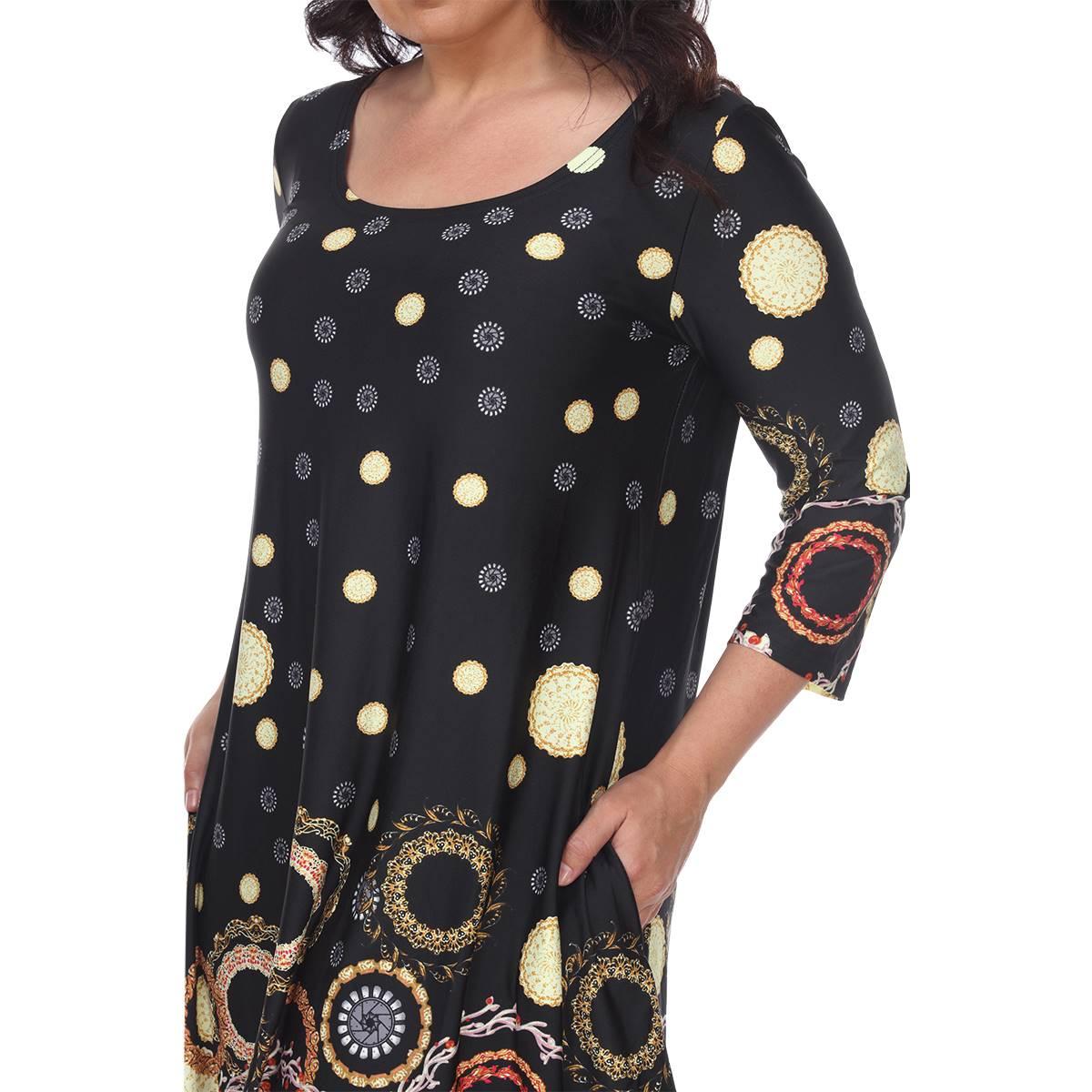 This flattering Erie White Mark tunic drapes stunningly on your body. With 3/4 sleeves, boat neck, and a bold and flirty combination print of unique style, you are sure to feel comfortable and look stylish.