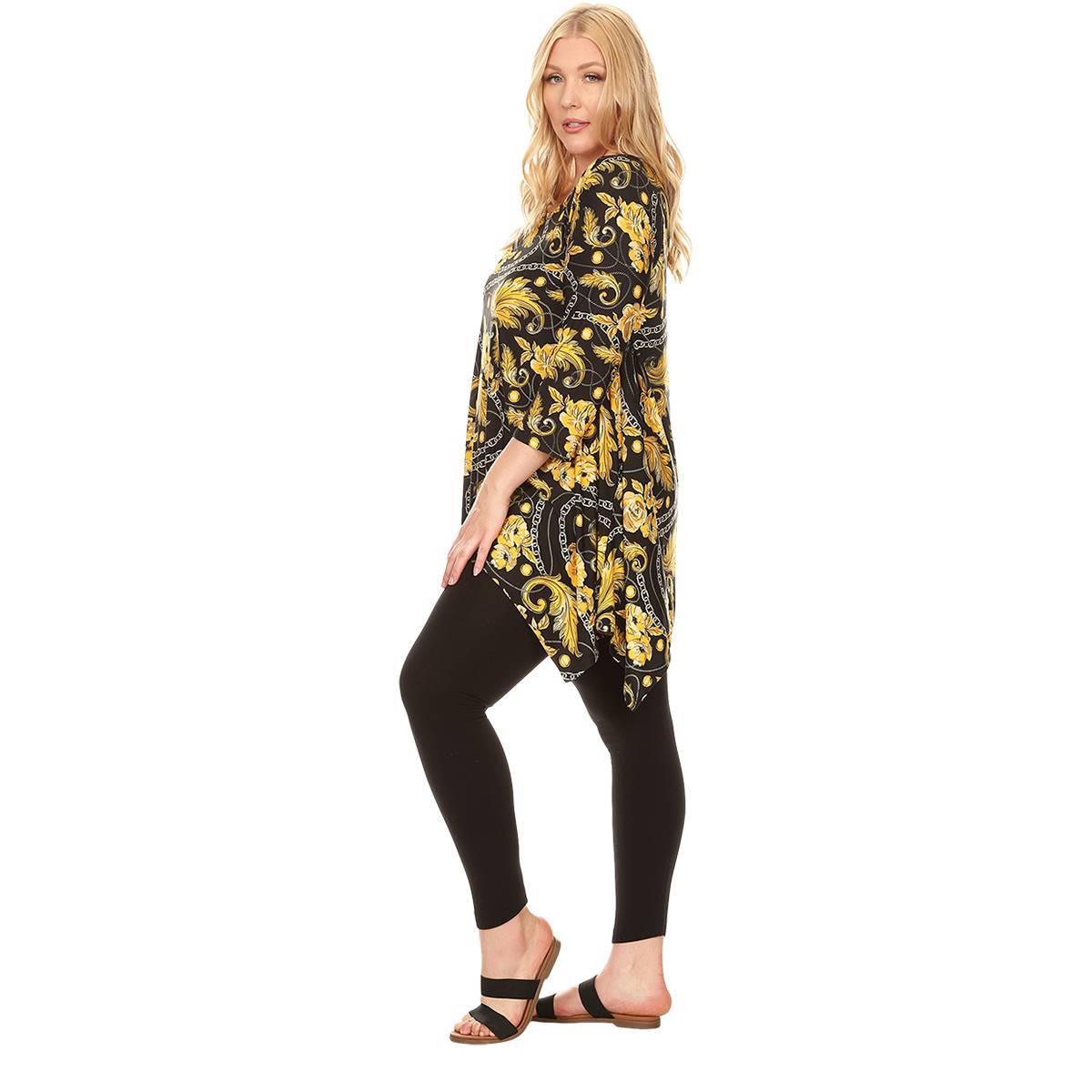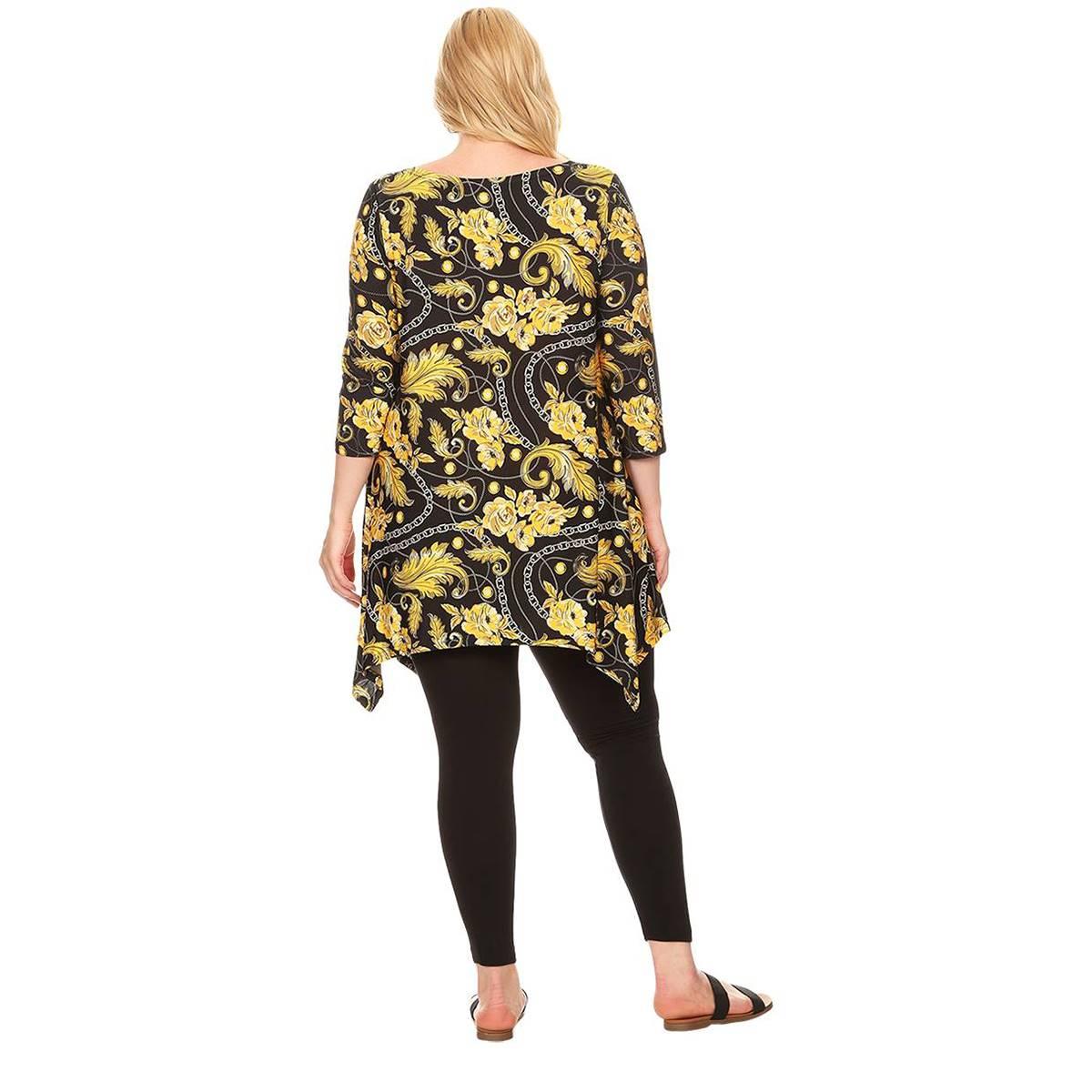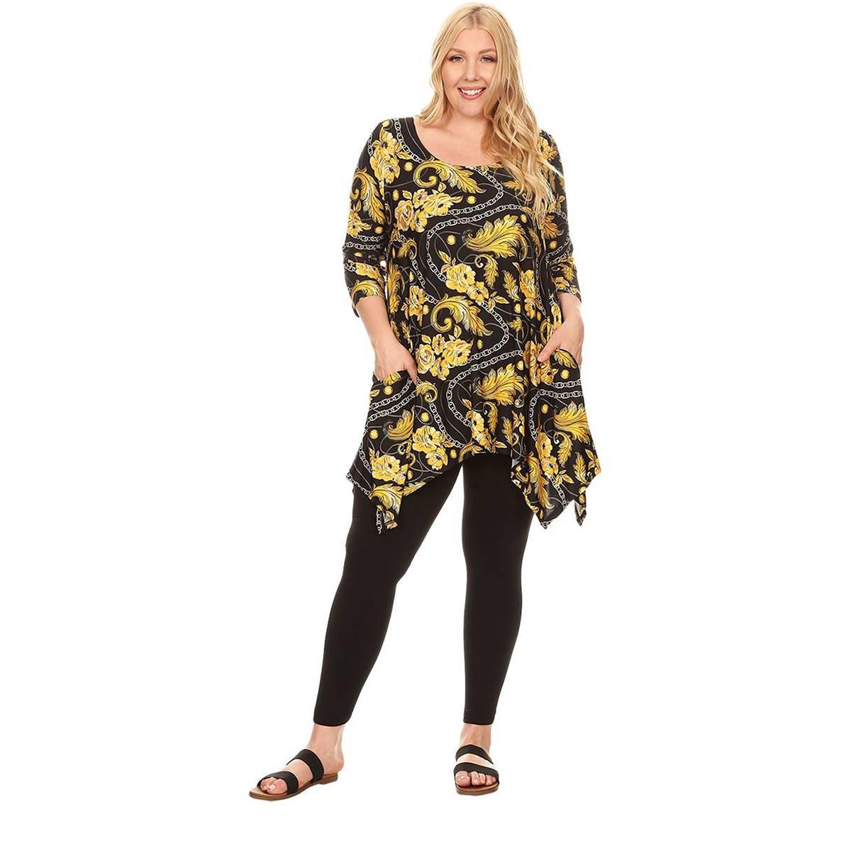 Description This Plus Size White Mark Alegra tunic drapes stunningly on your body. With a bold, flirty print, 3/4 sleeves, and side pockets you are sure to feel comfortable and...