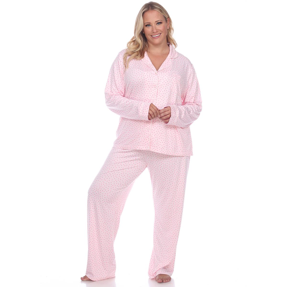 Description Sweet dreams start with this cute Plus Size White Mark dotted pajama set. This long sleeve, button down matching set is great for comfortably lounging on lazy...