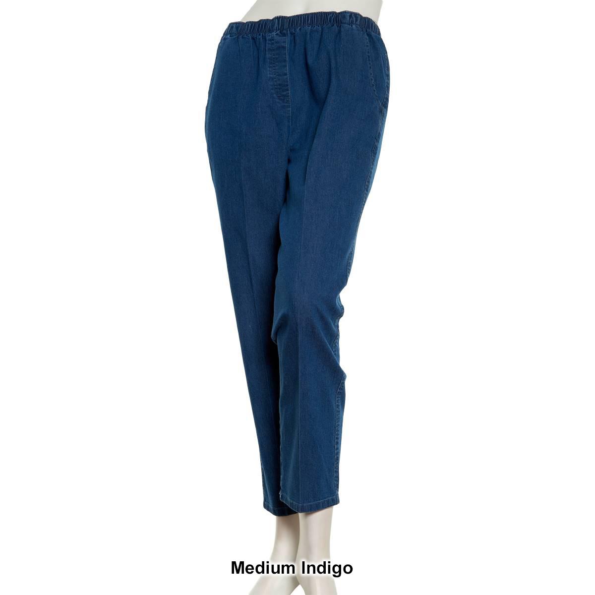 Be comfortable in your everyday look with styles that include these Plus Size Components pull-on denim-like casual pants with a stretch waist and faux front.