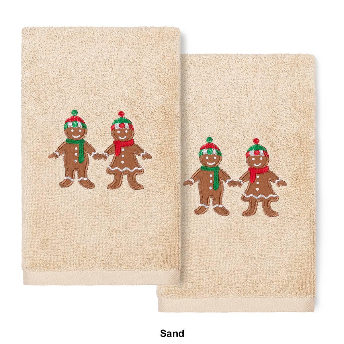 Description Your Christmas decorations are not complete without this Linum Home Textiles embroidered hand towel for your guest bath. This Christmas Gingerbread towel features a...