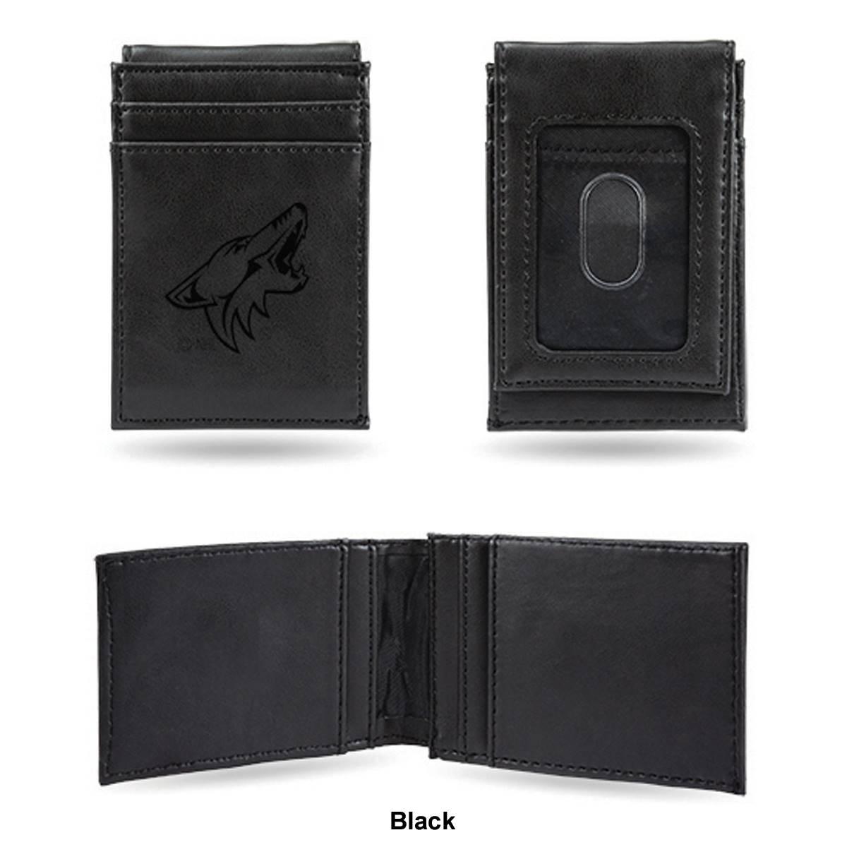 Put your money where your fandom is with this cool Mens NHL Arizona Coyotes front pocket wallet. Made from faux leather, the 4-inch long and 2.75-inch wide wallet has an Arizona Coyotes embossed logo with an ID window on the front and card slots. Show your love for your favorite team with this front pocket wallet.