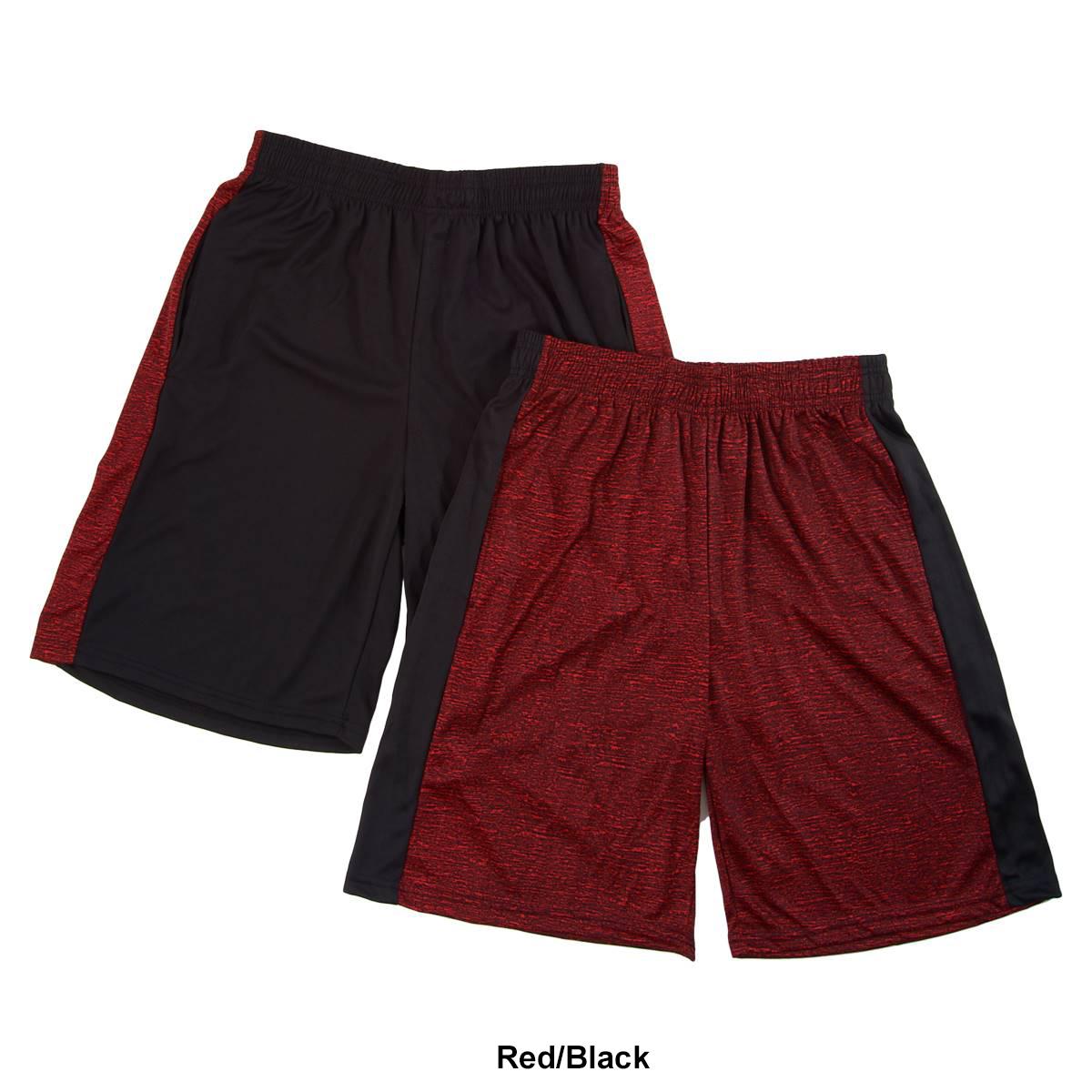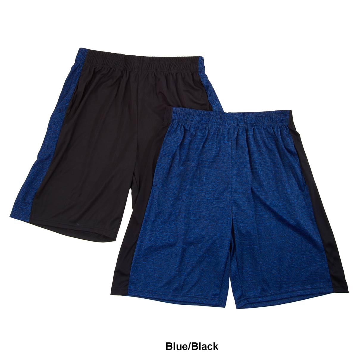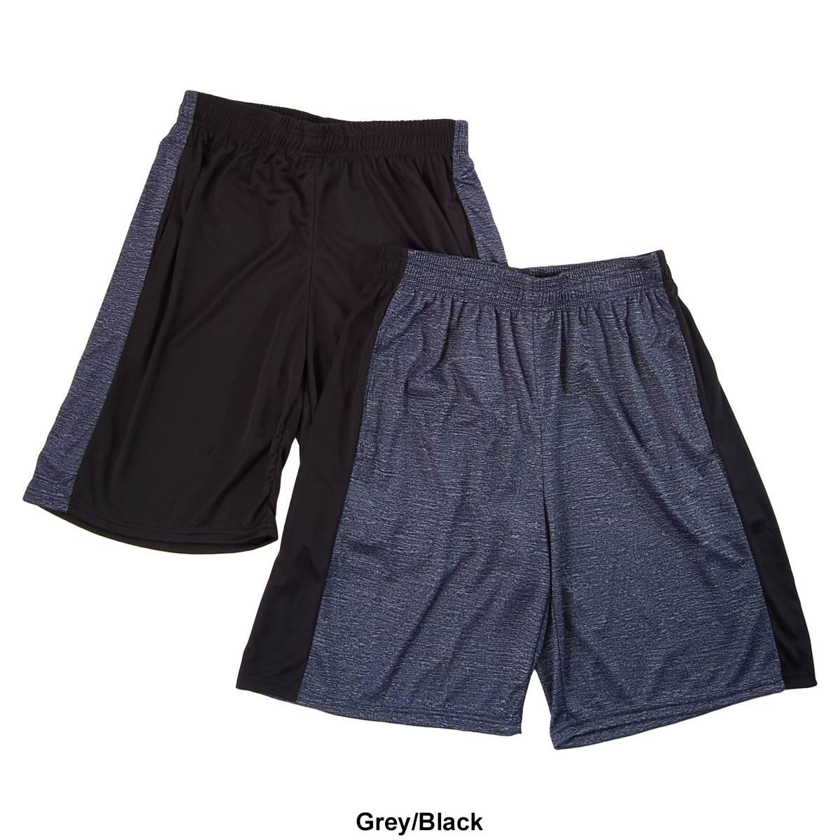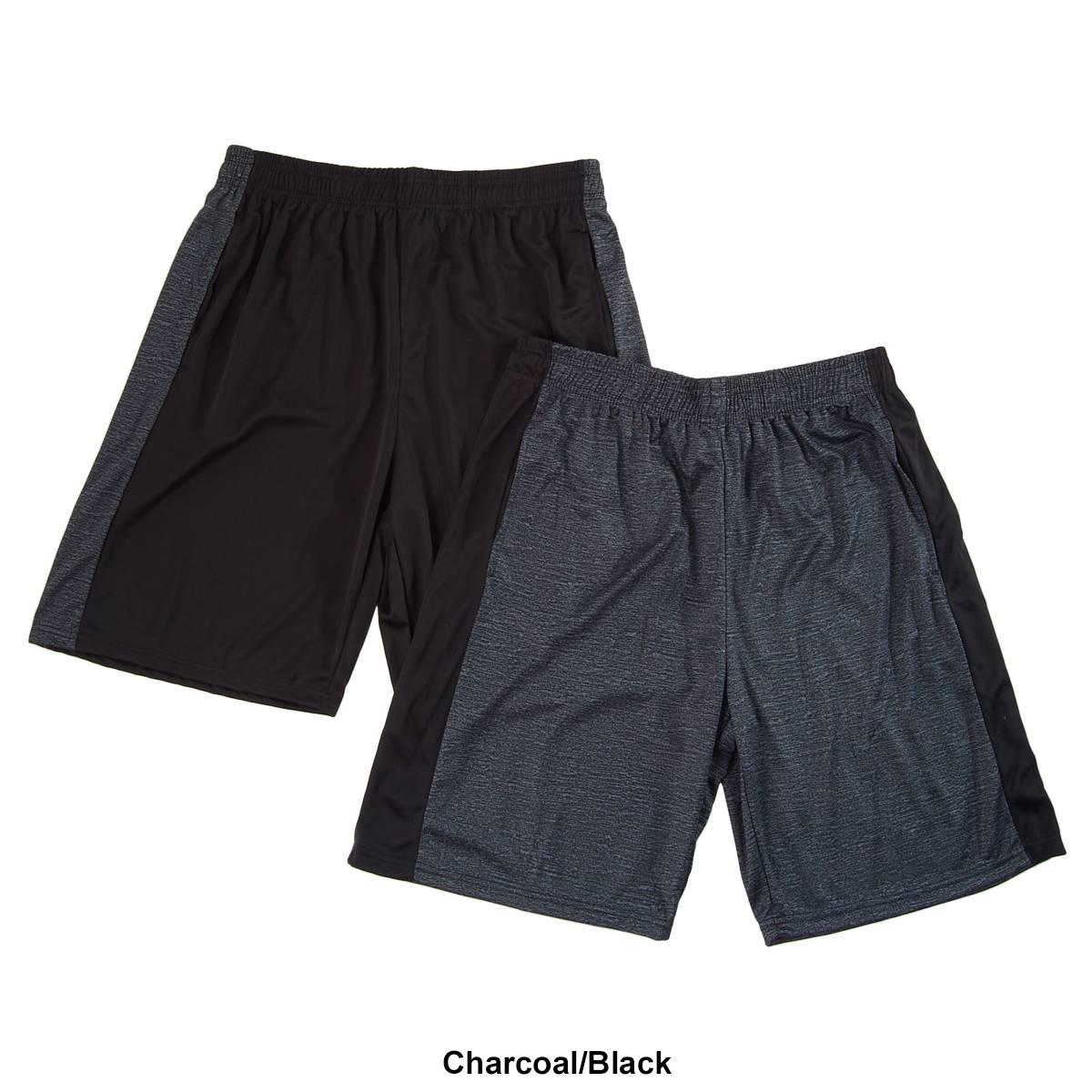 Description Add two trendy gym looks with this Mens Ultra Performance side panel 2-pack of active shorts. Shorts 1: elastic waistband, two side seam pockets, solid with space dye...