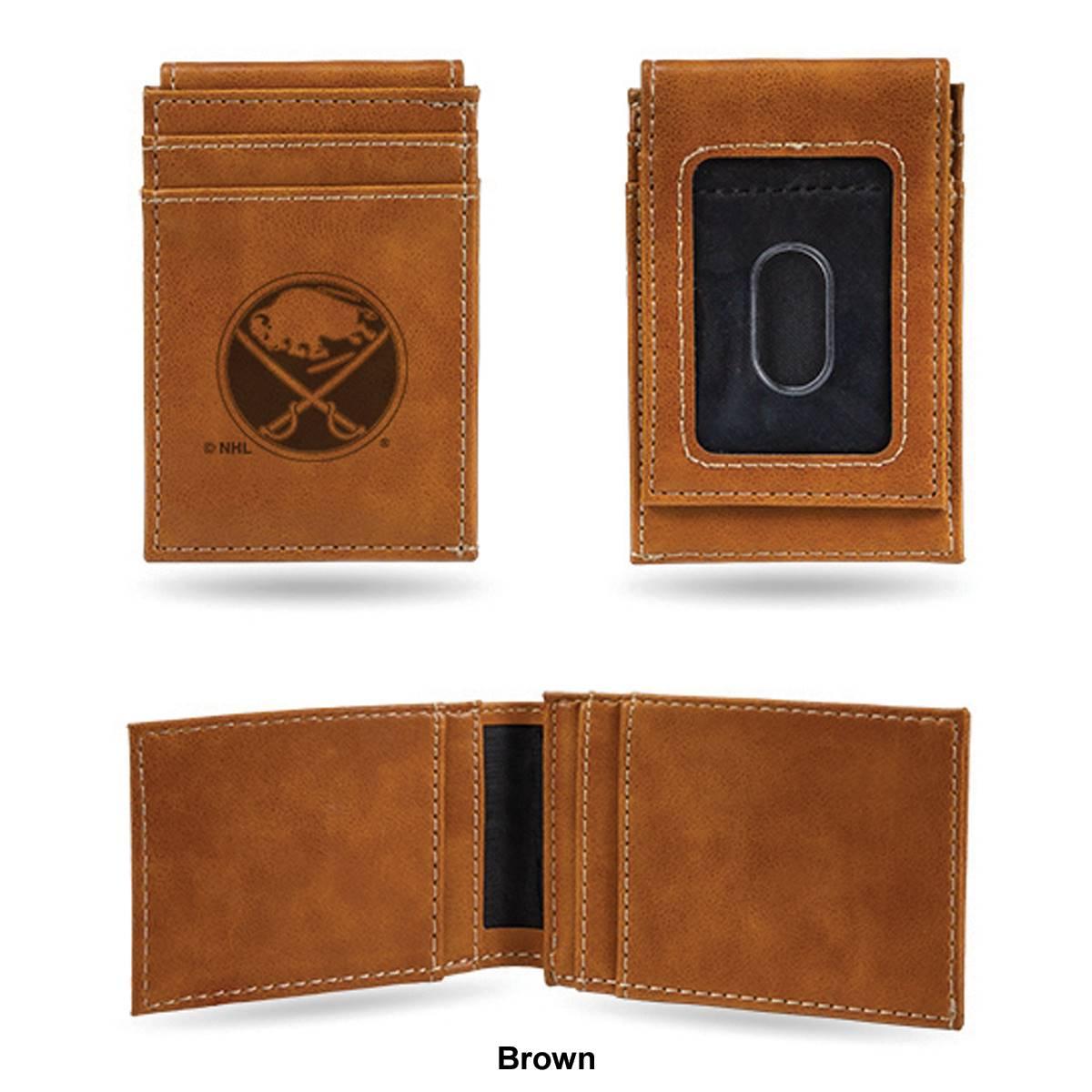 Description Put your money where your fandom is with this cool Mens NHL Buffalo Sabres front pocket wallet. Made from faux leather, the 4-inch long and 2.75-inch wide wallet has...