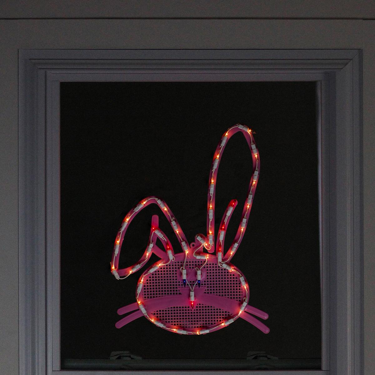 Description Add some glow to your window this Easter with this Northlight Seasonal bunny window silhouette. It features a pink bunny head with one ear flopped down lighted in...