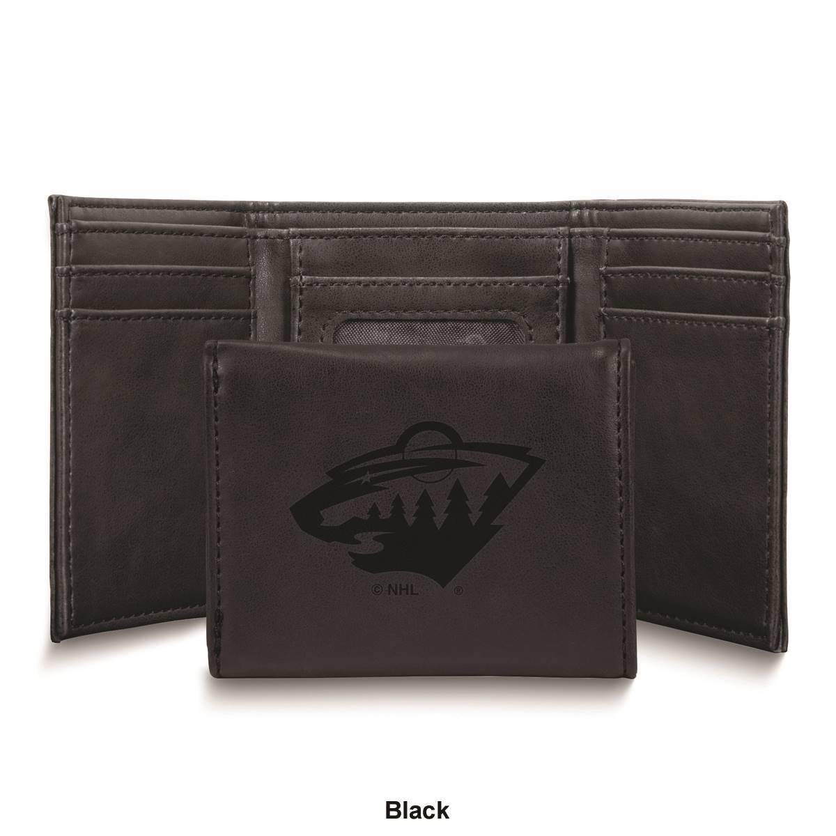 Carry a part of your favorite team with you and simultaneously keep your money safe with this Mens NHL Minnesota Wild trifold wallet. Made of faux leather, the 4-inch long and 3.25-inch wide wallet features a Minnesota Wild embossed logo, card slots, and an ID window for a complete look.