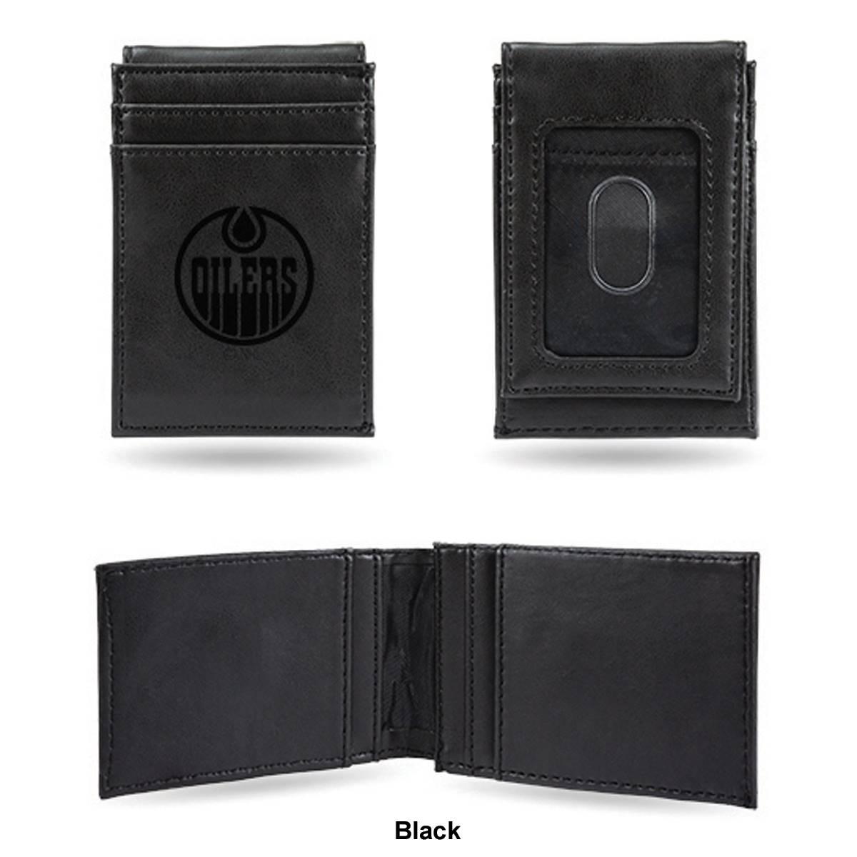 Put your money where your fandom is with this cool Mens NHL Edmonton Oilers front pocket wallet. Made from faux leather, the 4-inch long and 2.75-inch wide wallet has an Edmonton Oilers embossed logo with an ID window on the front and card slots. Show your love for your favorite team with this front pocket wallet.