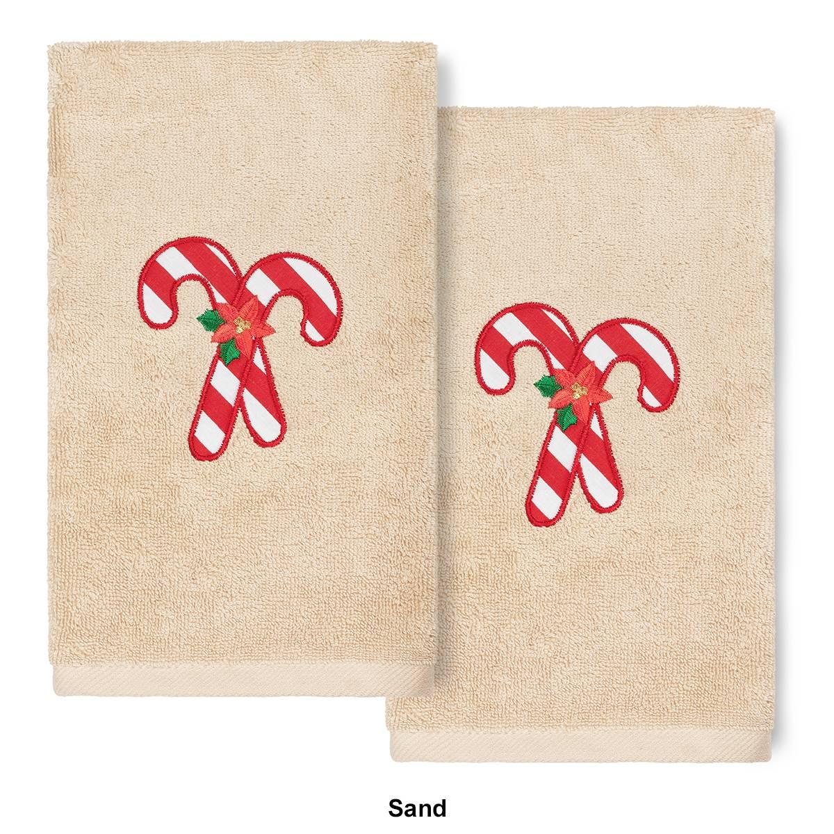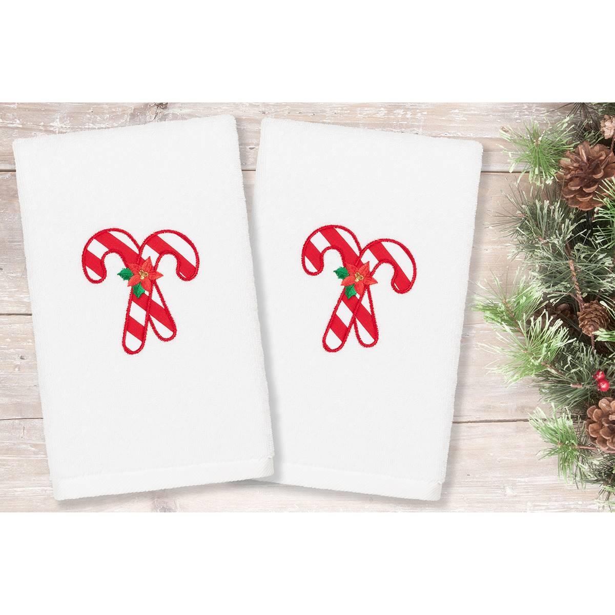 Description Your Christmas decorations are not complete without this Linum Home Textiles embroidered hand towel set for your guest bath. These Christmas Candy Canes towels...