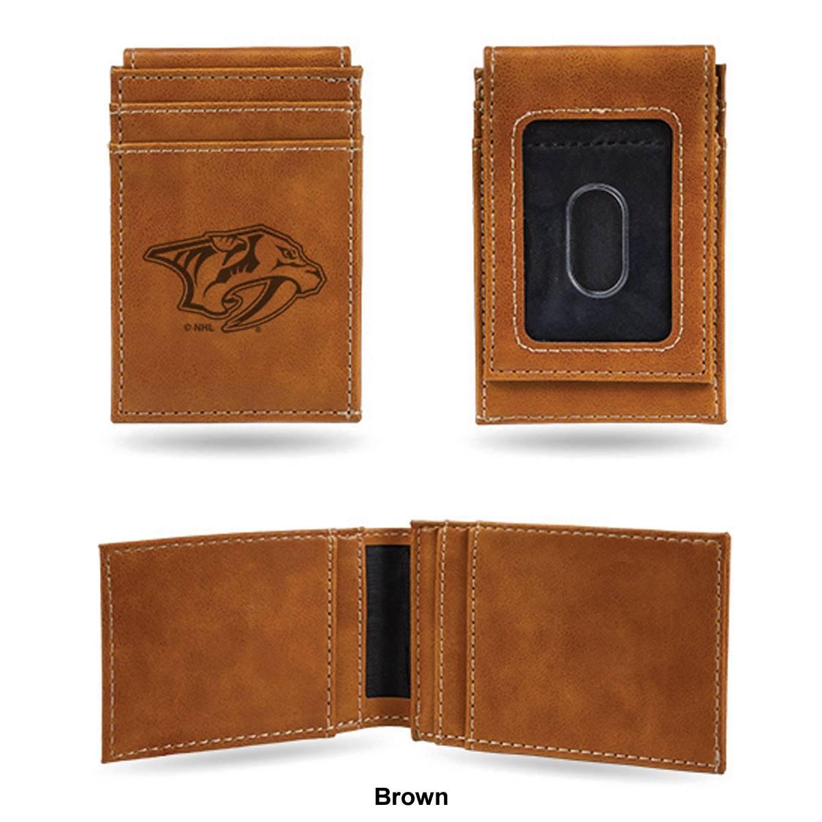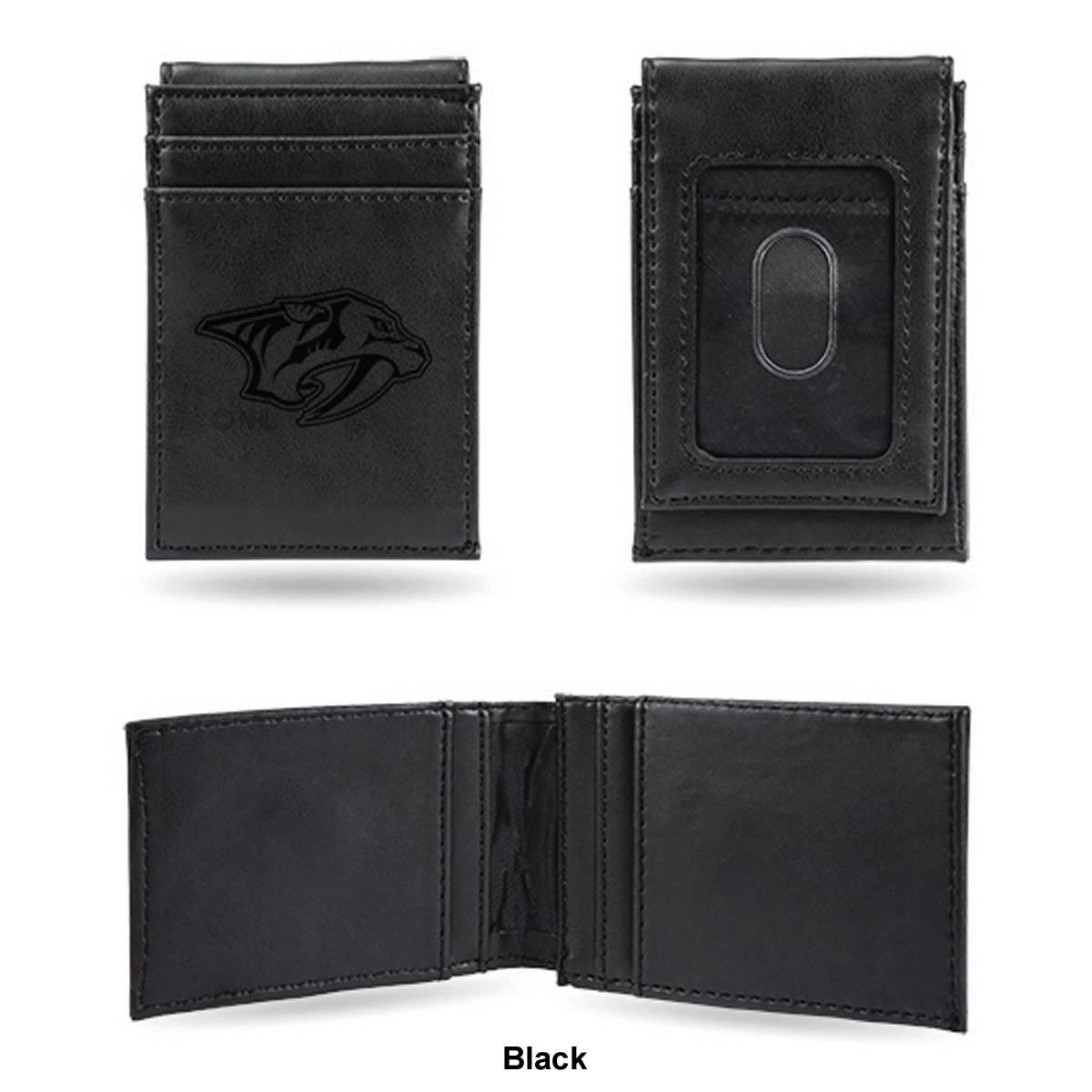 Description Put your money where your fandom is with this cool Mens NHL Nashville Predators front pocket wallet. Made from faux leather, the 4-inch long and 2.75-inch wide wallet...