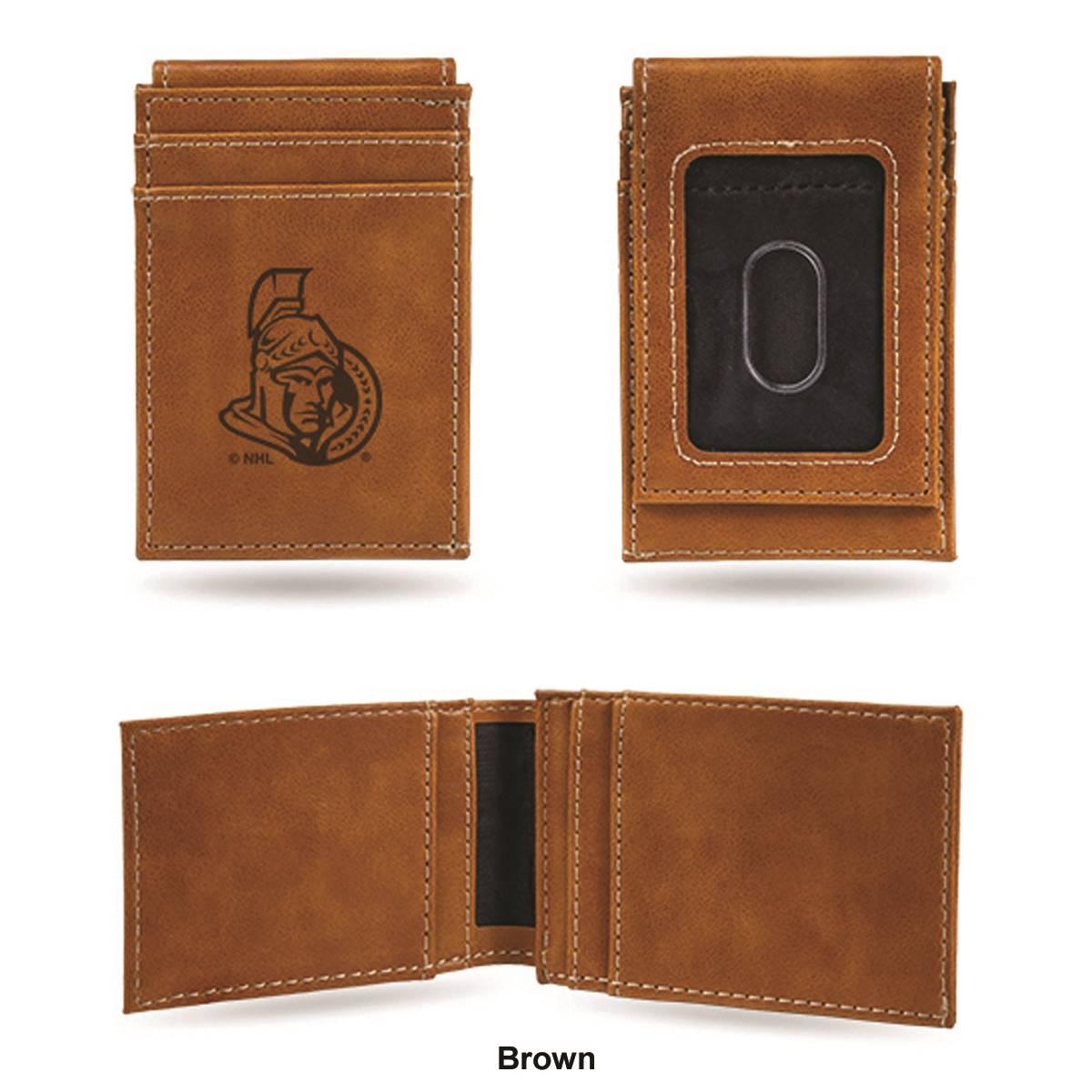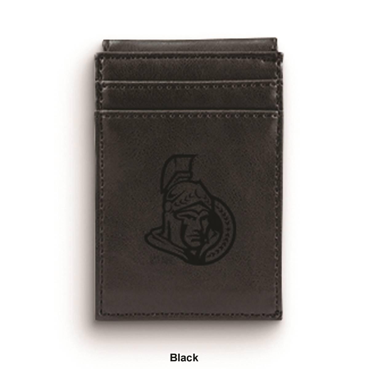Put your money where your fandom is with this cool Mens NHL Ottawa Senators front pocket wallet. Made from faux leather, the 4-inch long and 2.75-inch wide wallet has an Ottawa Senators embossed logo with an ID window on the front and card slots. Show your love for your favorite team with this front pocket wallet.