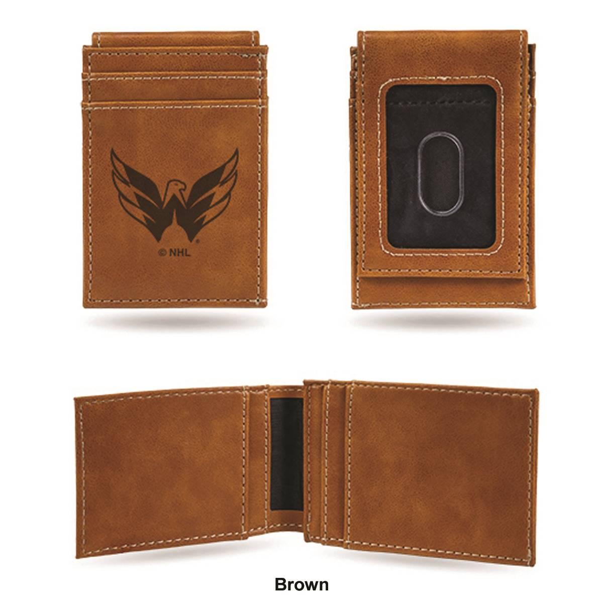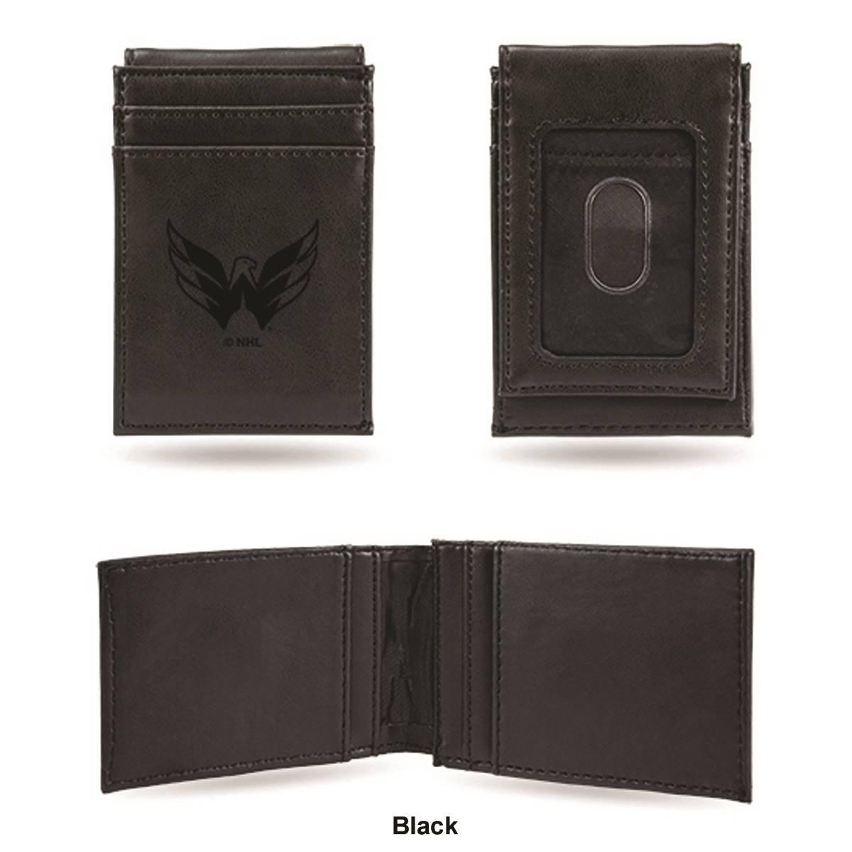 Put your money where your fandom is with this cool Mens NHL Washington Capitals front pocket wallet. Made from faux leather, the 4-inch long and 2.75-inch wide wallet has a Washington Capitals embossed logo with an ID window on the front and card slots. Show your love for your favorite team with this front pocket wallet.