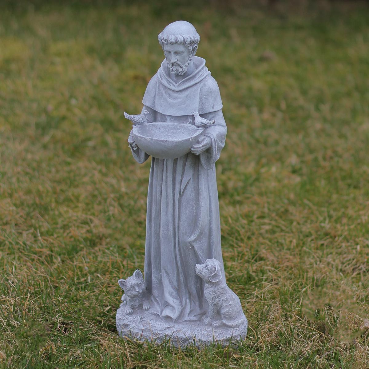 Perfect your garden with this Northlight Seasonal 17 inch St. Francis bird feeder statue. The small bason that is held by St. Francis is the perfect size for some water or birdseed for your special furry friends. A decorative garden statue is a perfect way to enhance your outdoor areas during the spring and summer months.