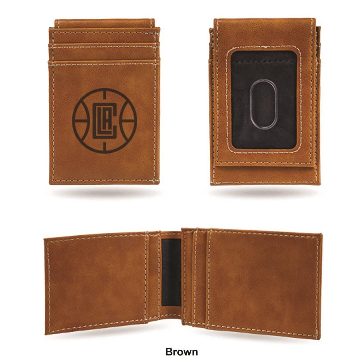 Put your money where your fandom is with this cool Mens NBA Los Angeles Clippers front pocket wallet. Made from faux leather, the 4-inch long and 2.75-inch wide wallet has a Los Angeles Clippers embossed logo with an ID window on the front and card slots. Show your love for your favorite team with this front pocket wallet.
