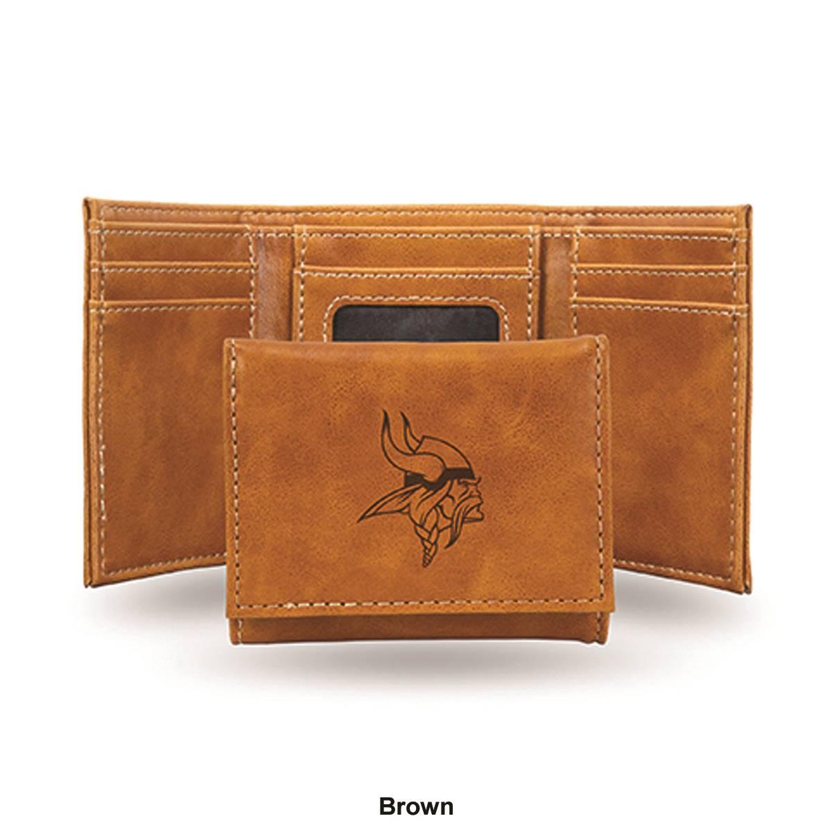 Carry a part of your favorite team with you and simultaneously keep your money safe with this Mens NFL Minnesota Vikings trifold wallet. Made of faux leather, the 4-inch long and 3.25-inch wide wallet features a Minnesota Vikings embossed logo, card slots, and an ID window for a complete look.