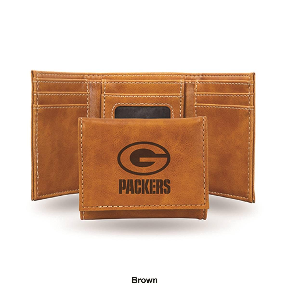 Carry a part of your favorite team with you and simultaneously keep your money safe with this Mens NFL Green Bay Packers trifold wallet. Made of faux leather, the 4-inch long and 3.25-inch wide wallet features a Green Bay Packers embossed logo, card slots, and an ID window for a complete look.