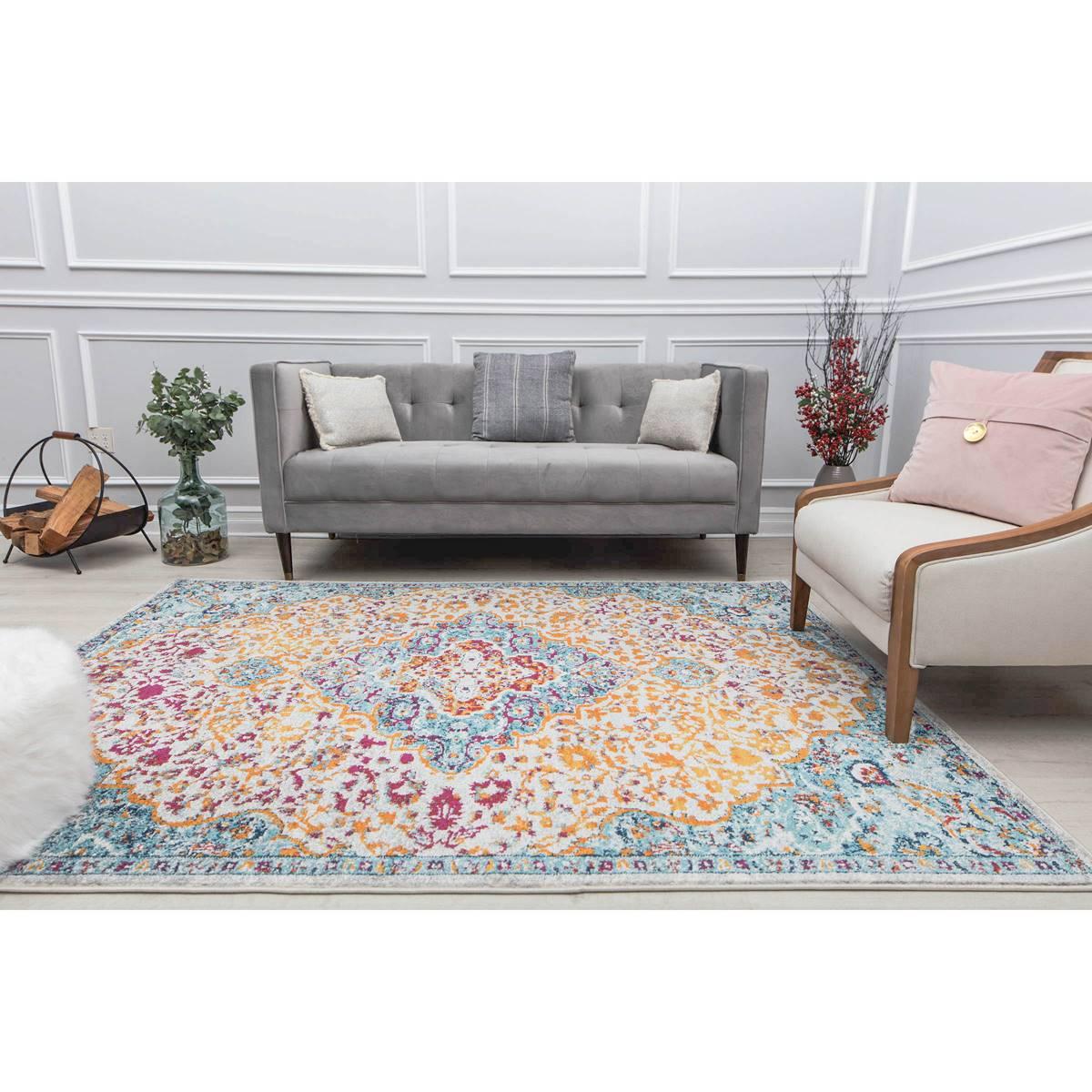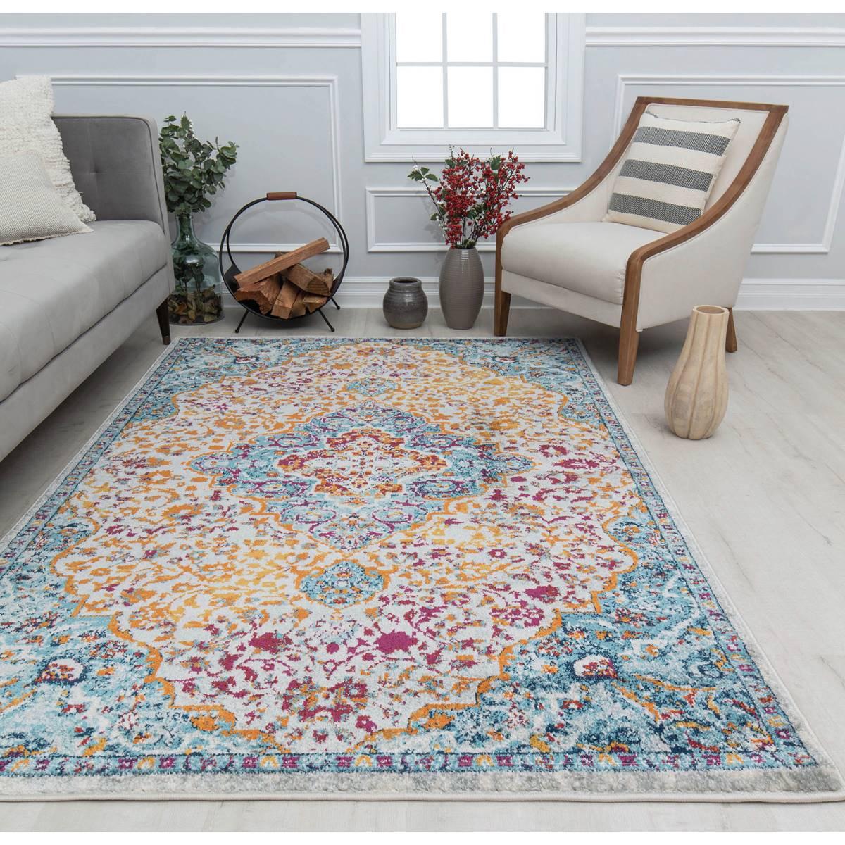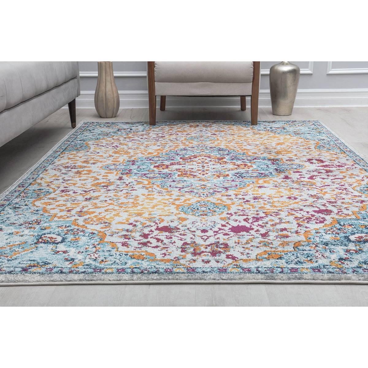 Set your space ablaze with this Rugs America™ Hailey Inner Glow Abstract Vintage Area Rug. Bursting with life and sophistication, this area rug is a harmonious symphony of color and design. This unique floor statement fuses classic motifs and border linework with playful pops of tangerine and magenta. Made in Turkey.