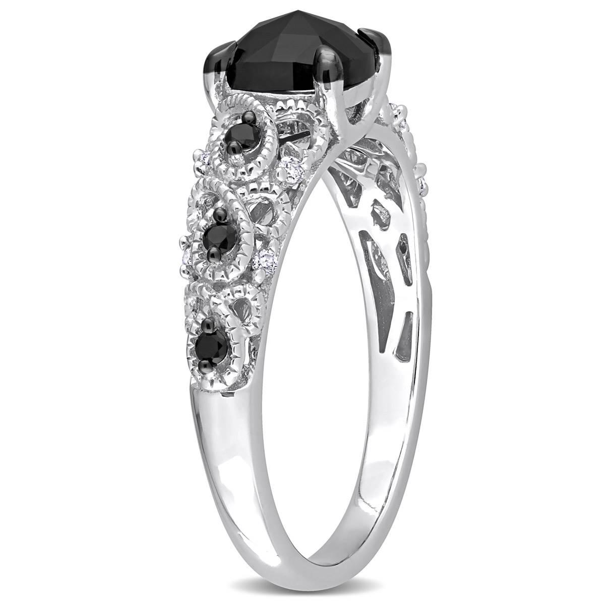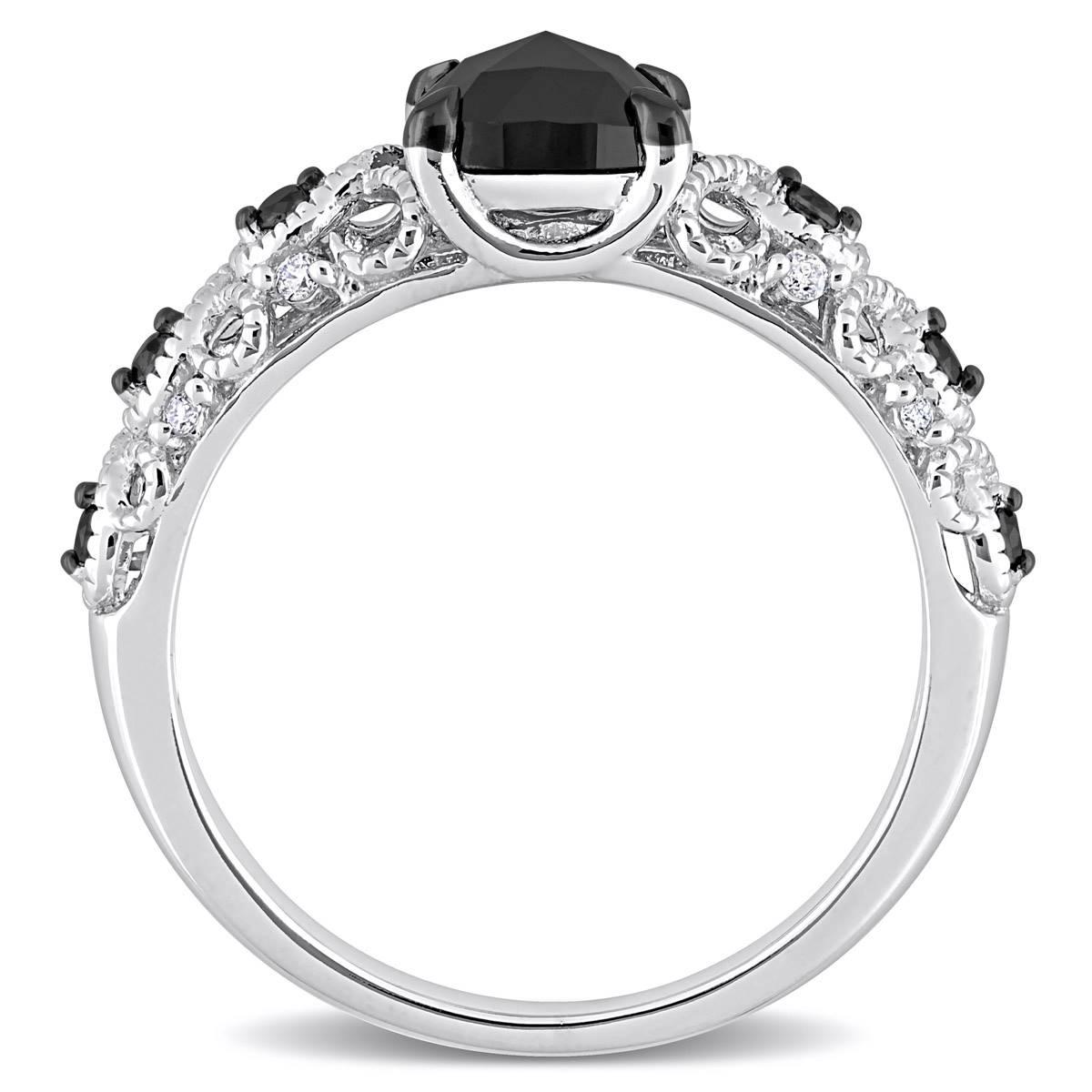 Description This Radiant Rainbow™ diamond infinity engagement ring is crafted in 14kt. white gold with black rhodium plating. This modern wedding ring features a cushion-cut,...