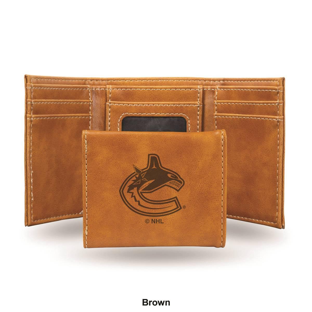 Description Carry a part of your favorite team with you and simultaneously keep your money safe with this Mens NHL Vancouver Canucks trifold wallet. Made of faux leather, the...