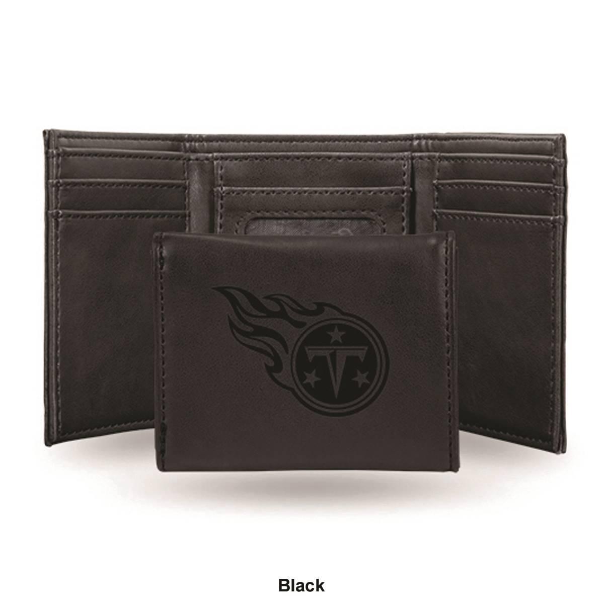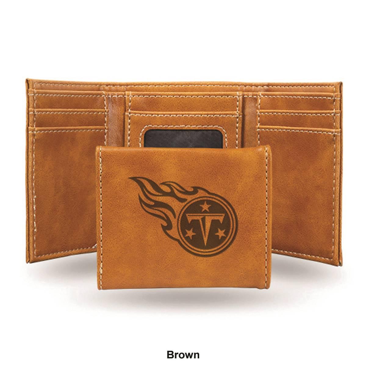 Carry a part of your favorite team with you and simultaneously keep your money safe with this Mens NFL Tennessee Titans trifold wallet. Made of faux leather, the 4-inch long and 3.25-inch wide wallet features a Tennessee Titans embossed logo, card slots, and an ID window for a complete look.