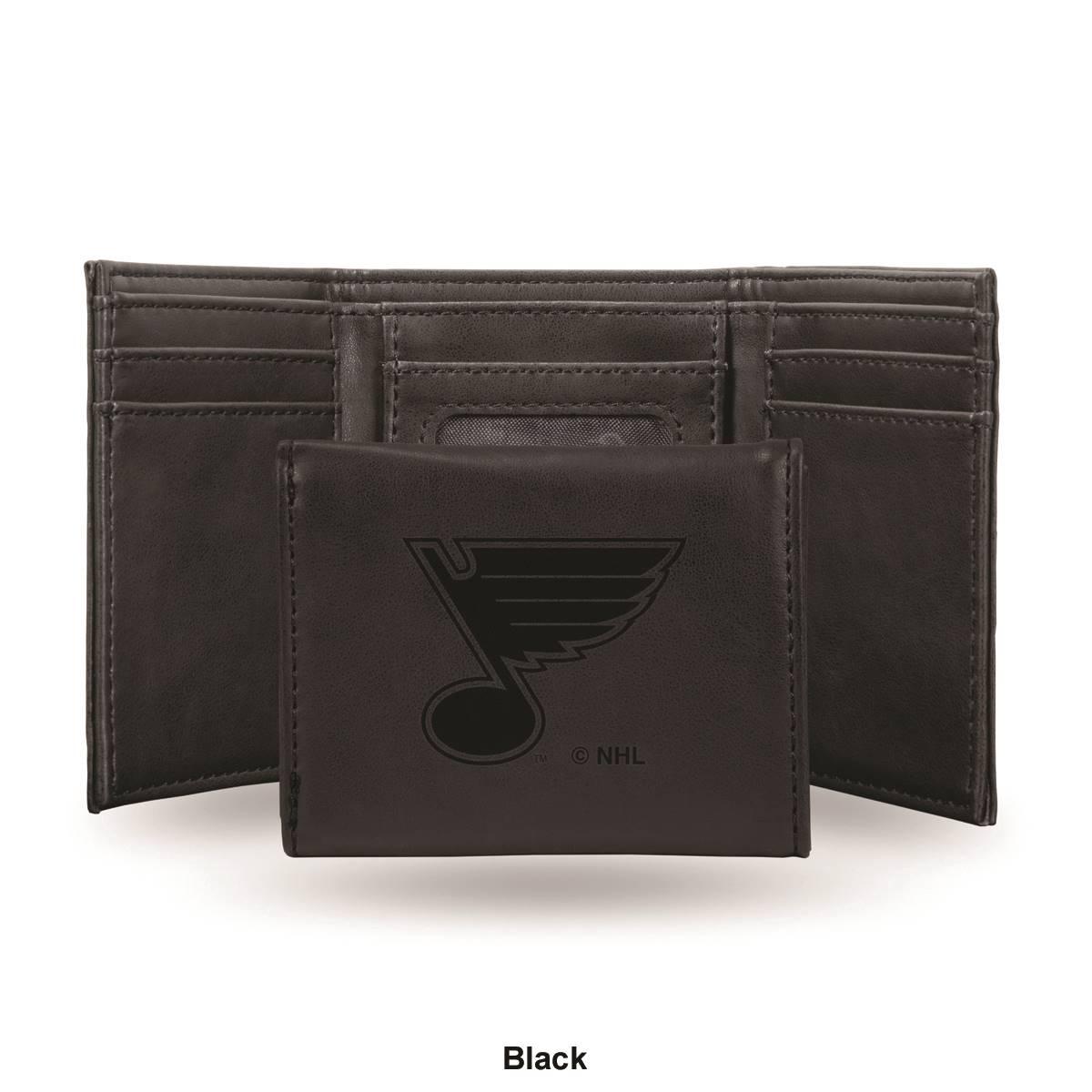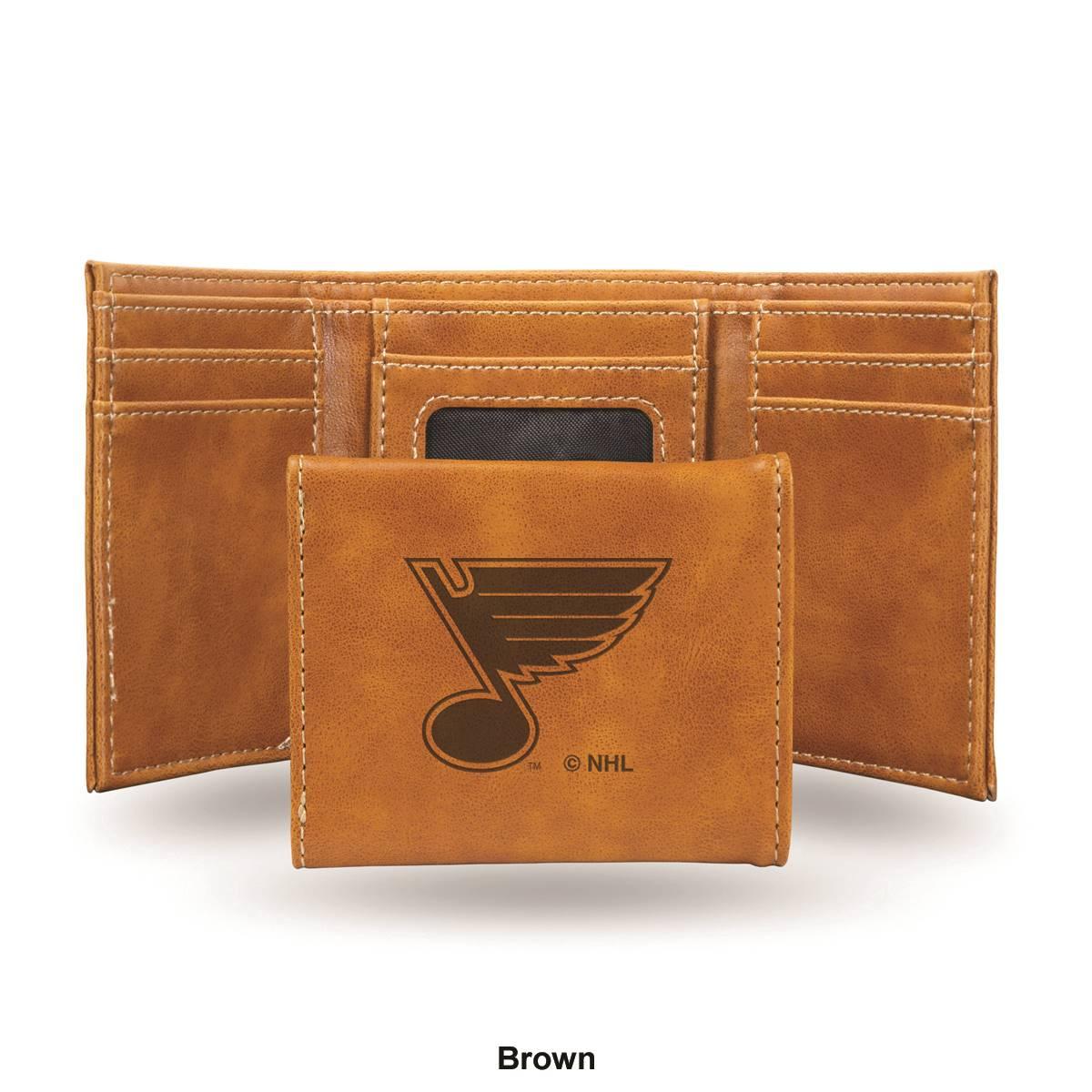 Carry a part of your favorite team with you and simultaneously keep your money safe with this Mens NHL St. Louis Blues trifold wallet. Made of faux leather, the 4-inch long and 3.25-inch wide wallet features a St. Louis Blues embossed logo, card slots, and an ID window for a complete look.