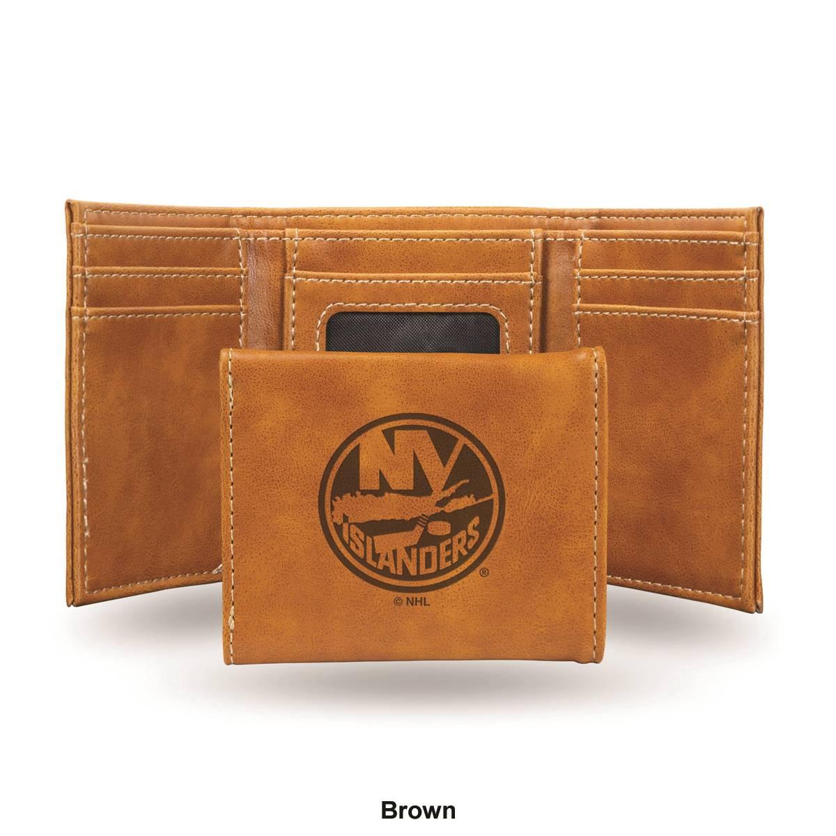 Carry a part of your favorite team with you and simultaneously keep your money safe with this Mens NHL New York Islanders trifold wallet. Made of faux leather, the 4-inch long and 3.25-inch wide wallet features a New York Islanders embossed logo, card slots, and an ID window for a complete look.
