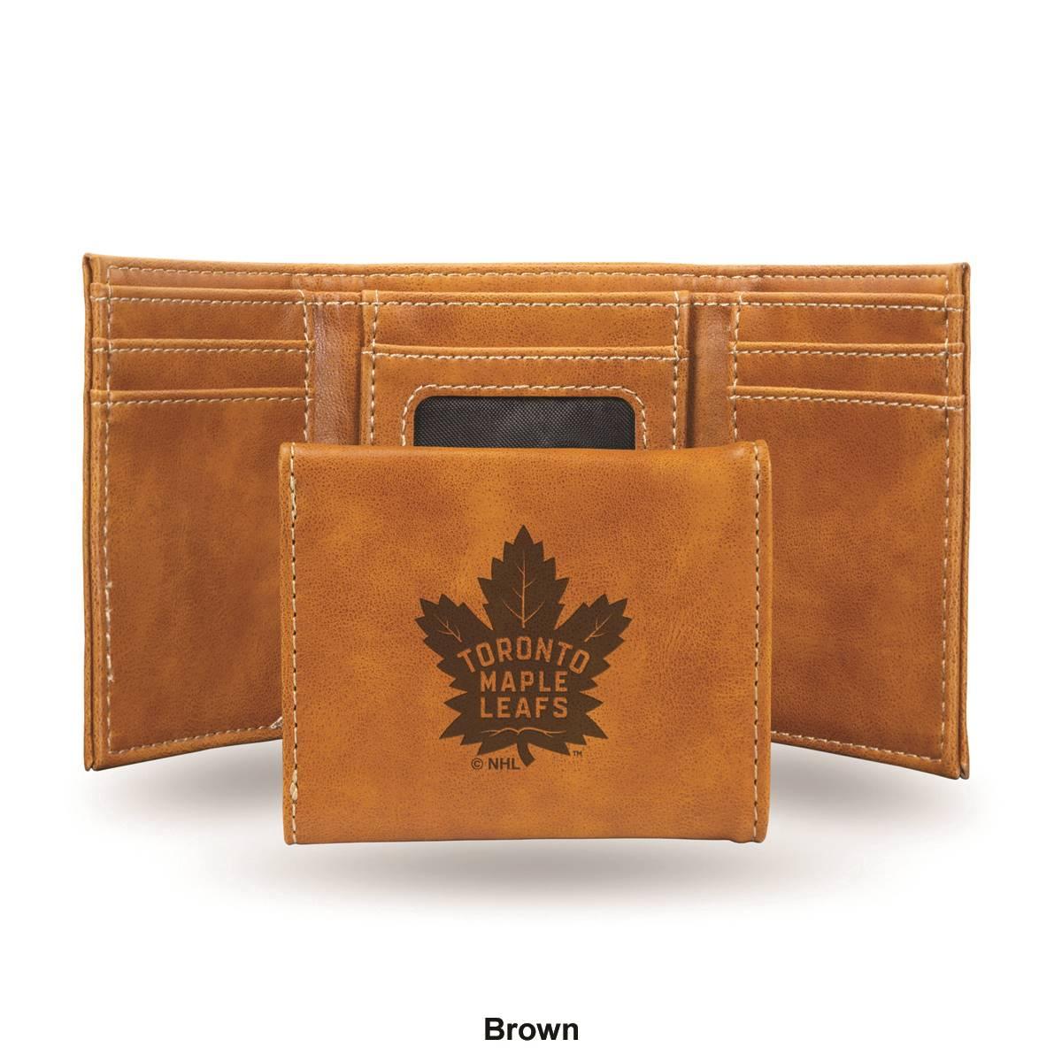 Description Carry a part of your favorite team with you and simultaneously keep your money safe with this Mens NHL Toronto Maple Leafs trifold wallet. Made of faux leather, the...
